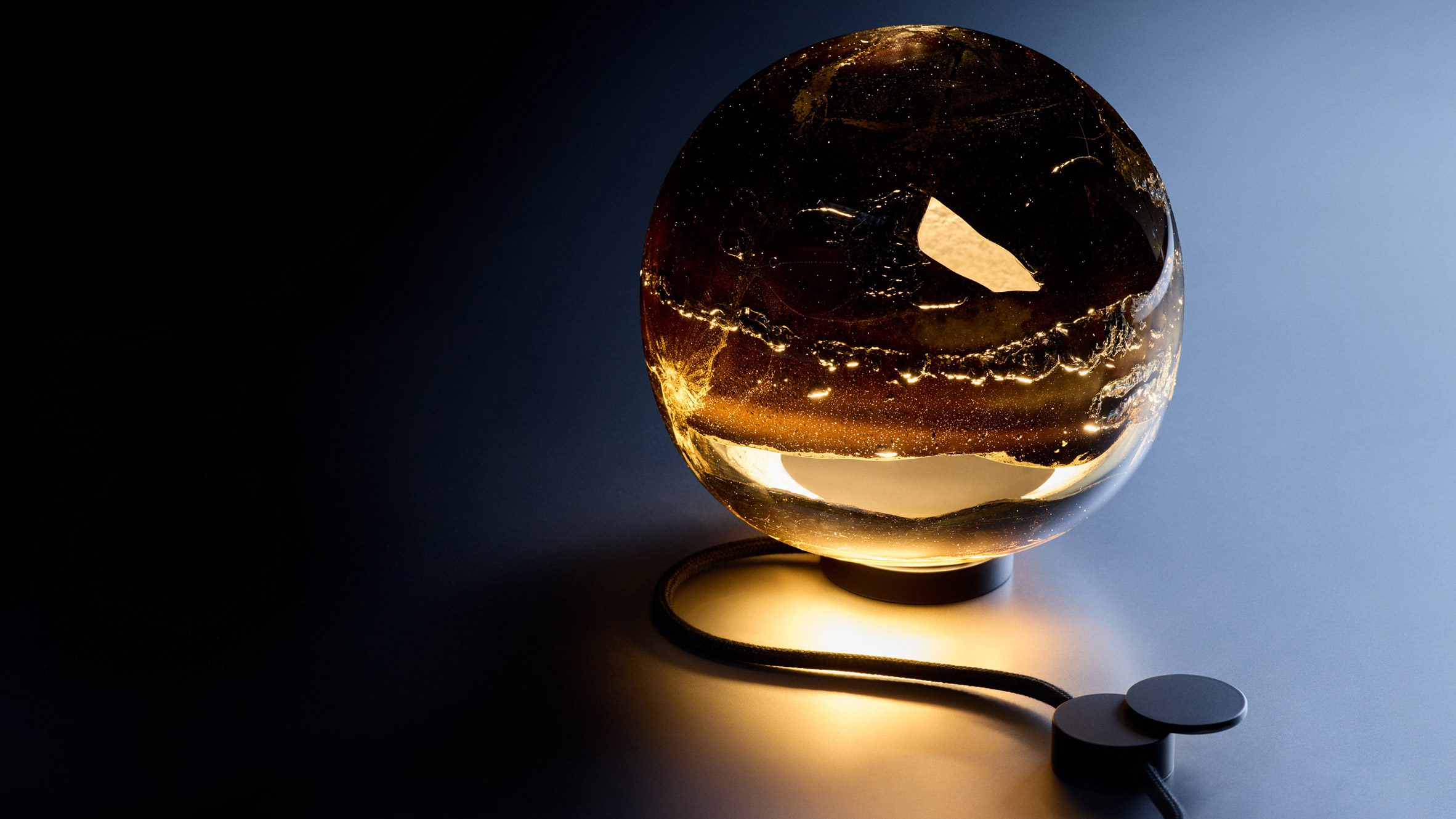 Este processo dá origem a uma superfície semelhante a mármore, única em cada recipiente e iluminada por dentro por uma lâmpada.
