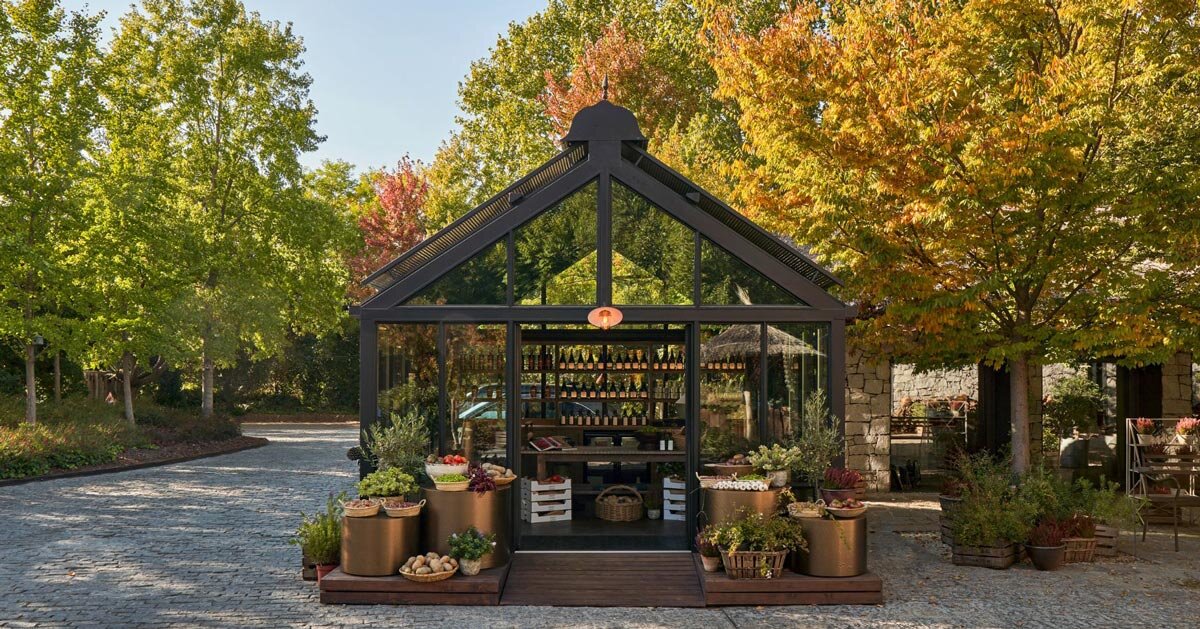 a arquitetura faz referência a tipologias tradicionais de estufas europeias