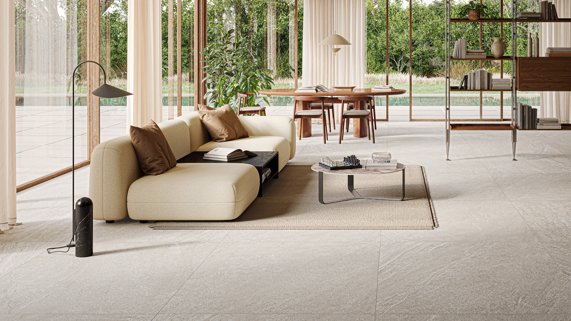 A gama Saxum tem opções tanto para interiores como para exteriores e pode ser utilizada em paredes, pavimentos, bancadas, divisórias e até como revestimento de fachadas.