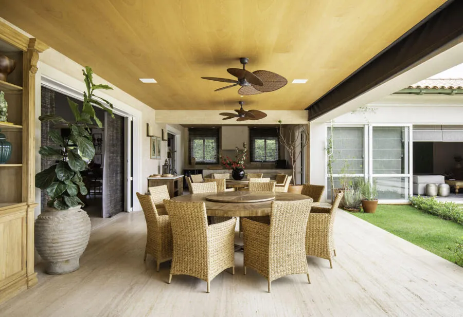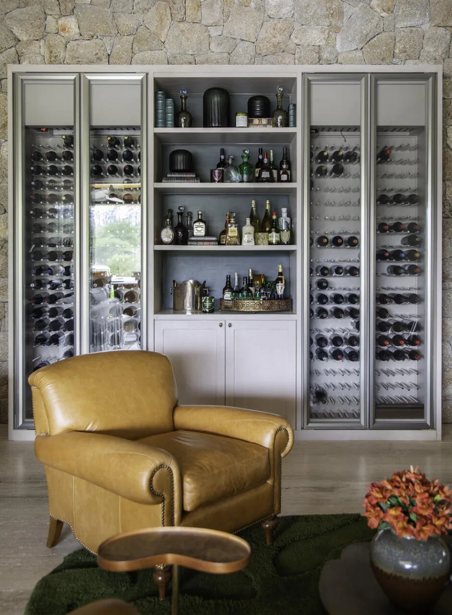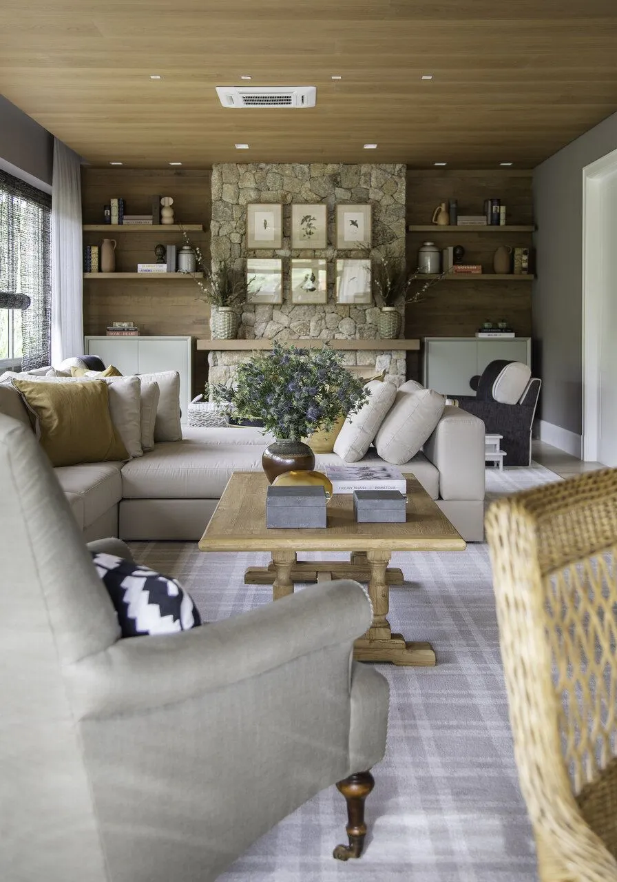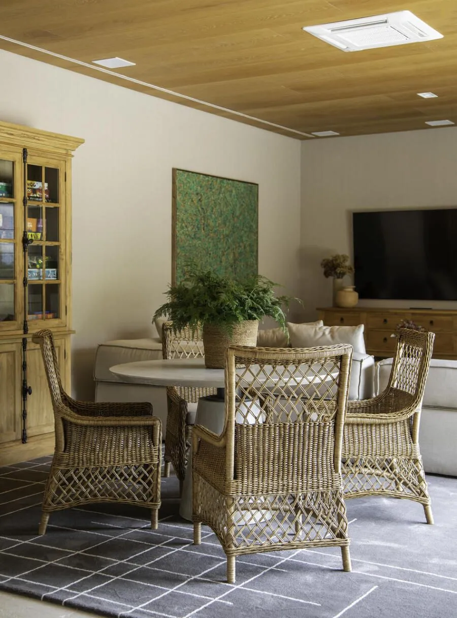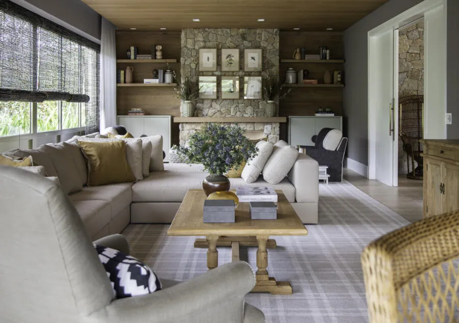 A casa já estava construída quando foi adquirida pela família, mas ganhou uma nova vida a partir do olhar sensível do arquiteto, que começou pelo mobiliário e pelo layout, para depois ajustar a arquitetura. O resultado é um projeto que respeita profundamente o que já existia de bom, valorizando o acervo dos moradores e seus desejos, ao mesmo tempo em que promove intervenções pontuais: paredes que caem, pergolados que se alongam, texturas que suavizam e uma iluminação pensada para aquecer os ambientes. Pensada para uma família com dois filhos, a residência se organiza em torno dos encontros. O living integrado à área gourmet e ao home com lareira cria um eixo generoso de convivência, perfeito tanto para o cotidiano quanto para os fins de semana cheios de visitas. O home, aliás, se revela como o espaço mais especial do projeto: íntimo, acolhedor, quase um refúgio dentro da própria casa.