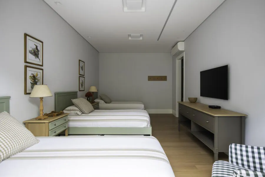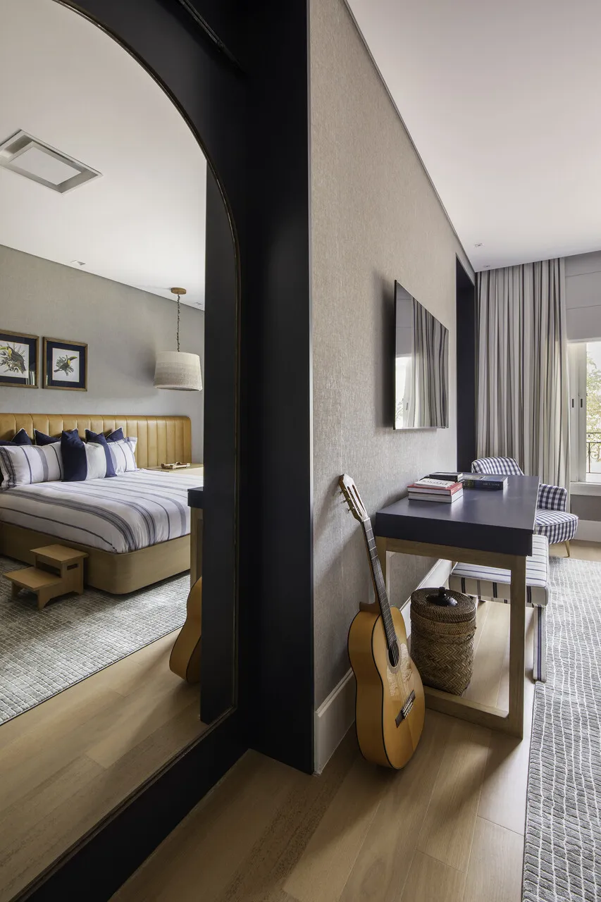Com seis suítes distribuídas entre os pavimentos, a casa equilibra praticidade e bem-estar, preservando a arquitetura original, assinada por Antonio Scarpa, agora reinterpretada com sensibilidade e afeto. Mais do que um projeto de decoração, trata-se de um trabalho que revela respeito pela história do lugar e pelas memórias que continuam sendo construídas ali.
