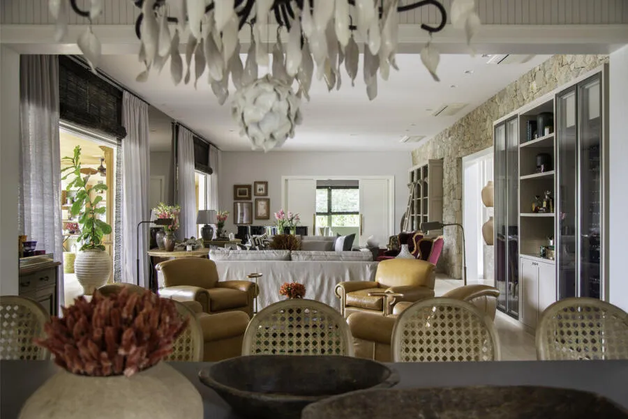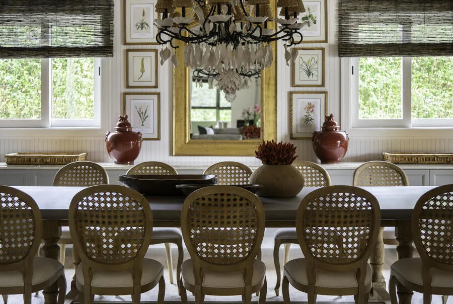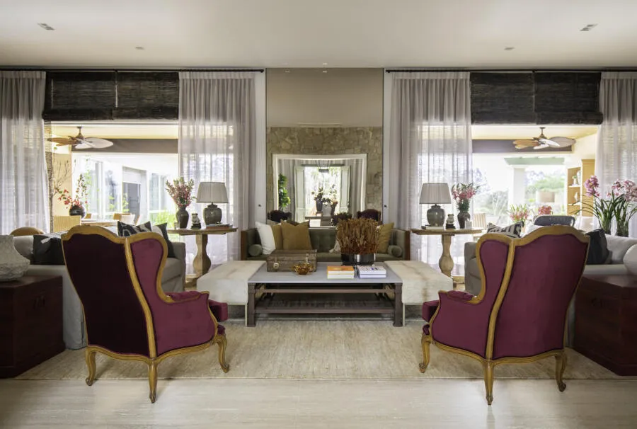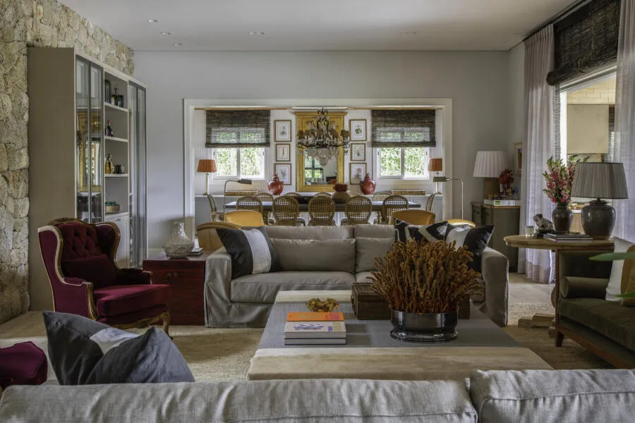 Ao longo do tour, a conversa passa por escolhas que ajudam a construir uma atmosfera clássica e acolhedora, misturando peças garimpadas, obras de arte, móveis sob medida e soluções que fogem do óbvio. As salas amplas ganham usos variados, a varanda se transforma em uma verdadeira sala ao ar livre e o jardim, com jasmim, camélias, fonte e pergolado, ativa os sentidos com cheiros, sons e sombras. Mauricio Karam explica decisões de projeto, comenta sobre fornecedores, materiais, papel de parede, marcenaria, tecidos e iluminação, além de compartilhar como é possível aquecer uma casa grande sem perder conforto. O passeio inclui quartos, cozinha, suítes de hóspedes e espaços de convivência, sempre mantendo viva essa essência de casa de fazenda europeia, entre o toscano e o provençal.