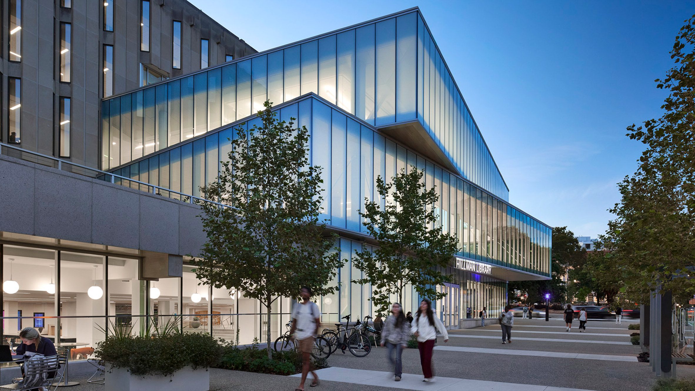 “O objetivo do projeto da Biblioteca Hillman era fornecer a infraestrutura para apoiar essa transformação, ao mesmo tempo em que criava um ambiente mais conectado à natureza e totalmente conectado ao tecido urbano circundante, à comunidade mais ampla do campus e à própria cidade.”