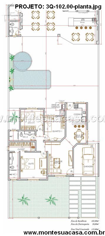 Com proporções equilibradas e um layout otimizado, o projeto 3Q-102.00 alia estética e funcionalidade. Cada metro quadrado foi pensado para proporcionar praticidade, conforto e bem-estar, adaptando-se facilmente a terrenos urbanos de diferentes dimensões.