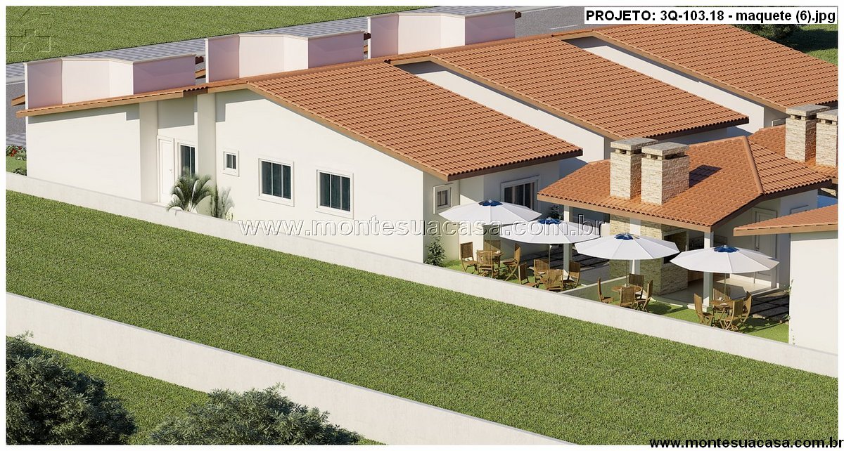 O projeto 3Q-103.18 apresenta uma proposta inteligente e econômica para empreendimentos residenciais, ideal para loteamentos e condomínios horizontais. Com 103,18 m² de área construída, esta casa térrea geminada combina conforto, estética moderna e excelente aproveitamento do terreno.