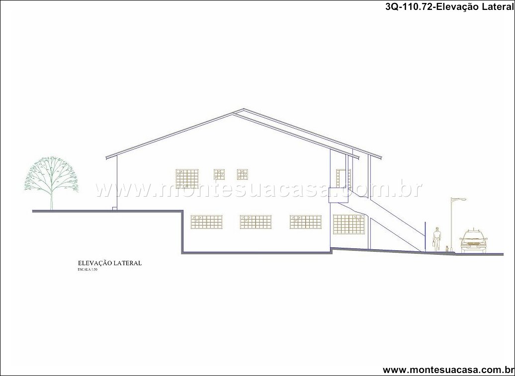 Casa moderna adaptada ao terreno em aclive Este projeto de casa com 3 quartos foi desenvolvido para terrenos em aclive, aproveitando a elevação natural como elemento arquitetônico. A proposta valoriza a paisagem, cria ambientes integrados e garante funcionalidade em todos os níveis.