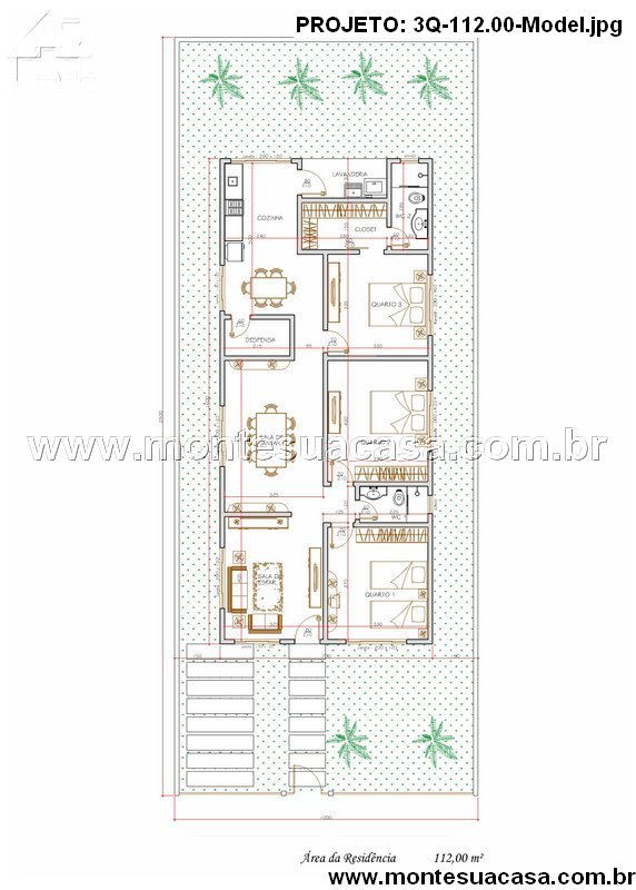 O projeto de casa térrea com 112m² oferece uma planta funcional e elegante, ideal para famílias que valorizam conforto, praticidade e integração dos ambientes. O layout foi cuidadosamente desenvolvido para aproveitar cada metro quadrado, proporcionando fluidez e bem-estar em todos os espaços.
