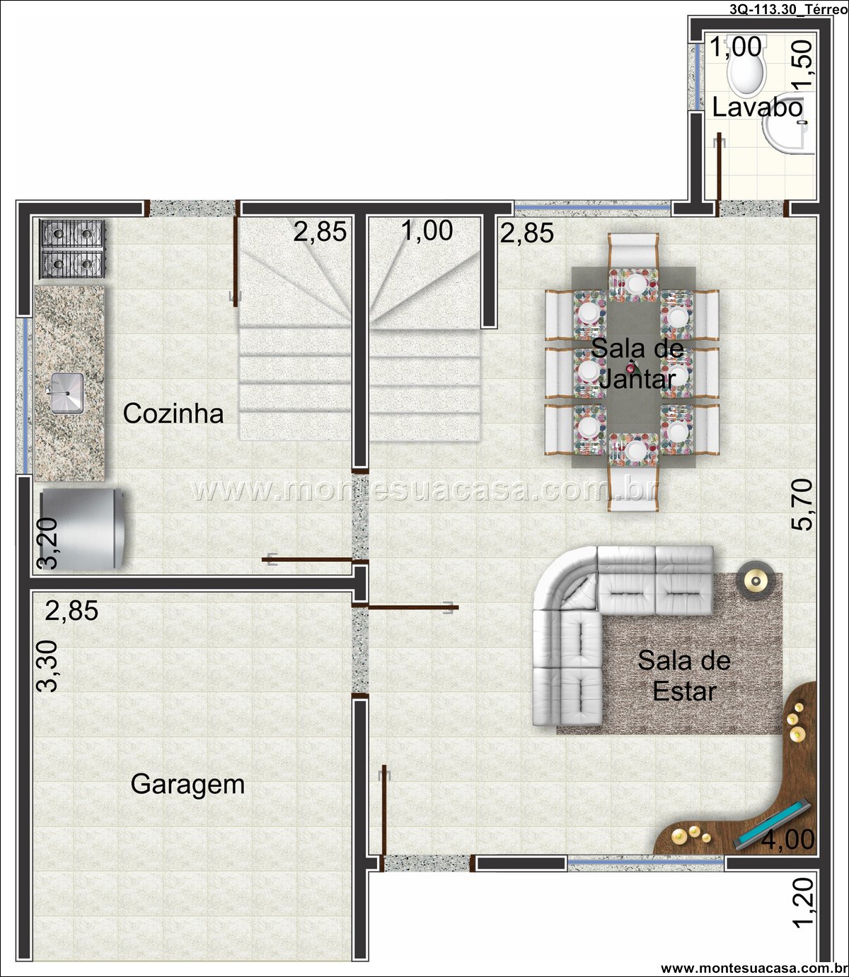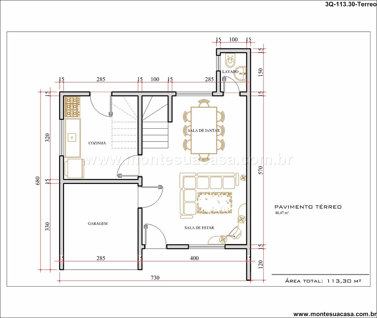 Este projeto de casa sobrado oferece uma solução inteligente e funcional para famílias que buscam conforto, privacidade e aproveitamento máximo do terreno. Com 113,30m² de área total distribuída entre pavimento térreo e superior, o layout foi cuidadosamente planejado para equilibrar estética, praticidade e bem-estar.