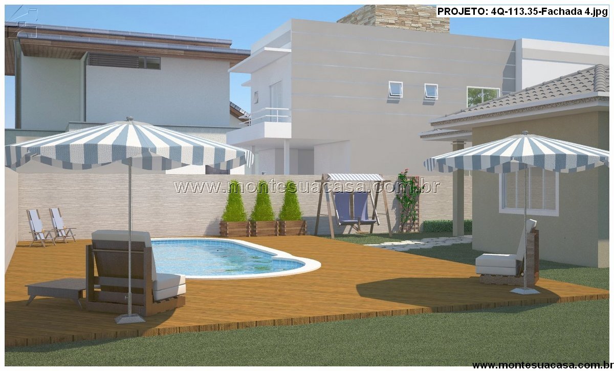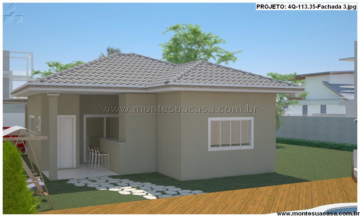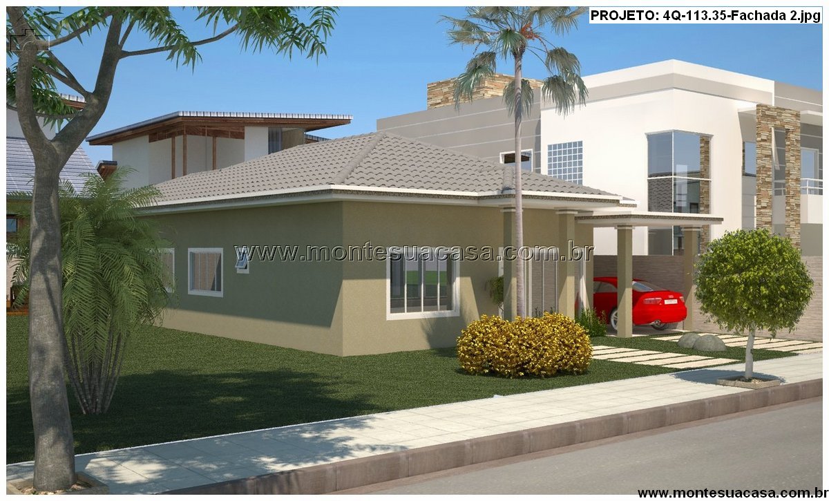 Este projeto arquitetônico inovador oferece uma casa térrea de 113.35 m², meticulosamente planejada para proporcionar conforto e praticidade para toda a família. A planta humanizada demonstra um layout inteligente que maximiza o espaço disponível, criando um ambiente ao mesmo tempo acolhedor e funcional. A fachada, apresentada em quatro visuais distintos, combina elementos contemporâneos com um apelo estético que valoriza imediatamente a propriedade.