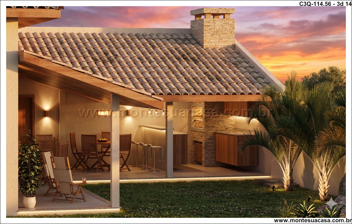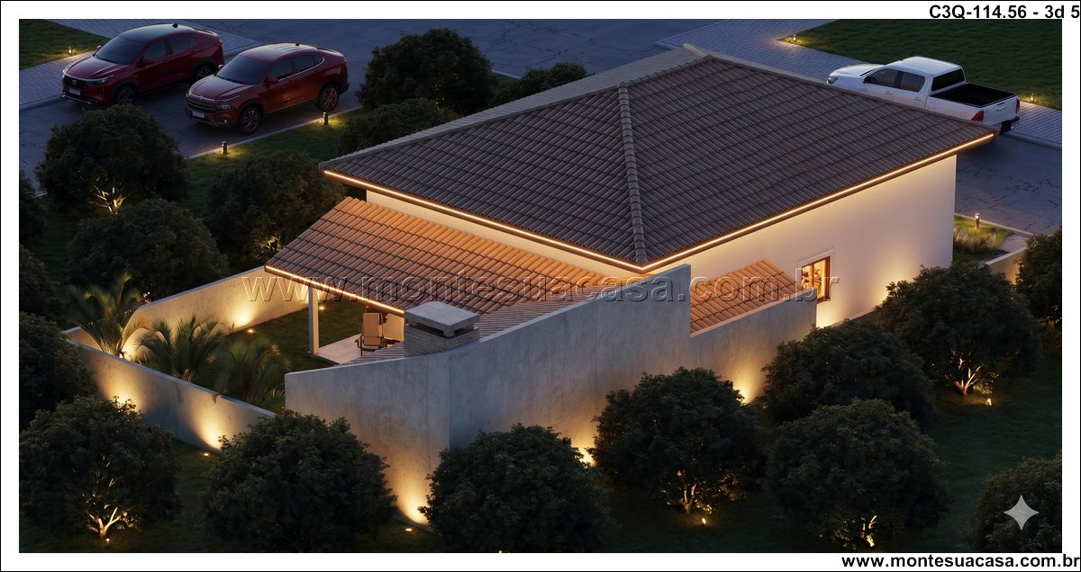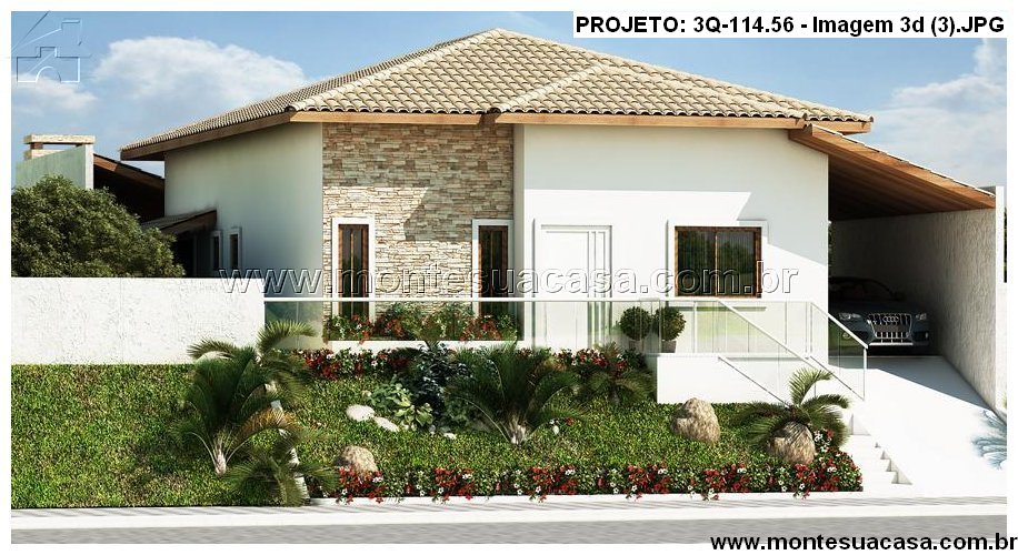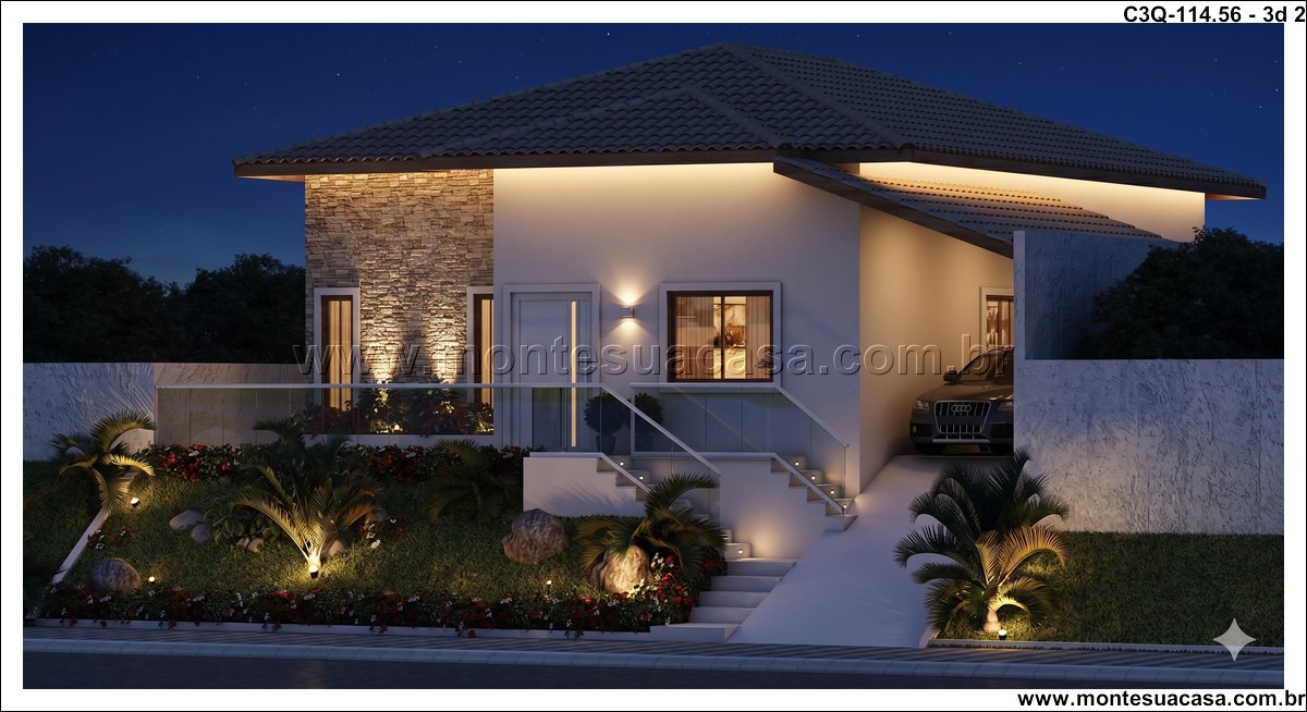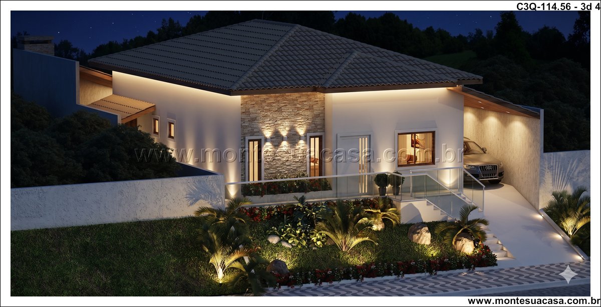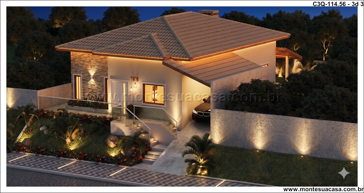 O projeto 3Q-114.56 é uma casa térrea moderna e acolhedora, ideal para famílias que valorizam conforto e integração entre os ambientes. Com 114,56 m², o projeto combina elegância e funcionalidade em cada detalhe, oferecendo uma fachada charmosa com revestimento em pedra natural e telhado cerâmico de quatro águas, que conferem sofisticação e harmonia ao conjunto arquitetônico.