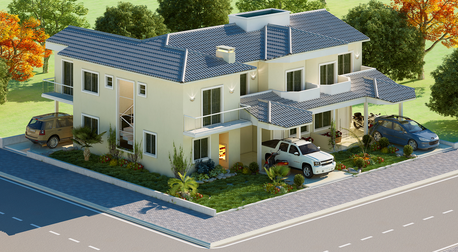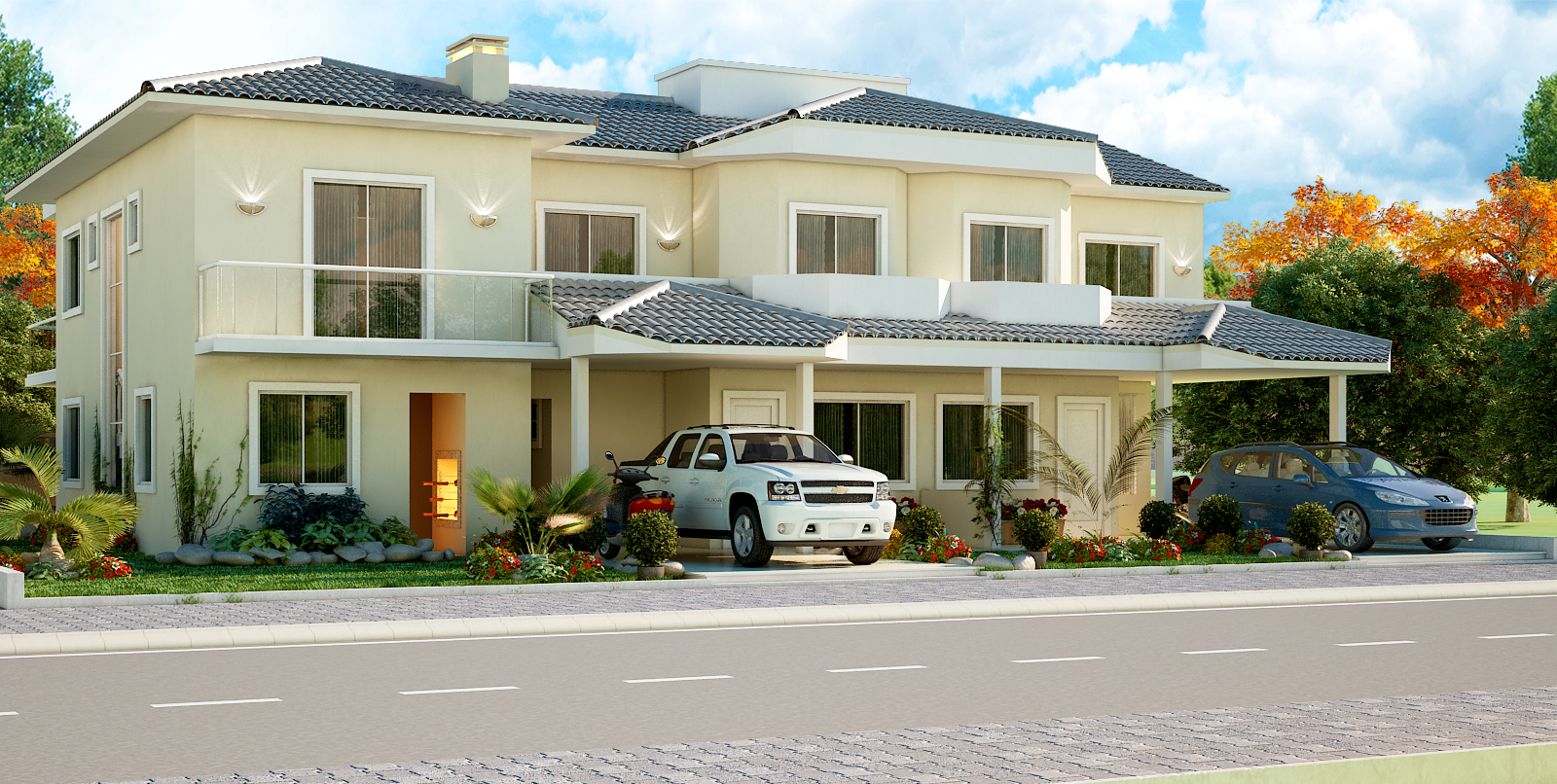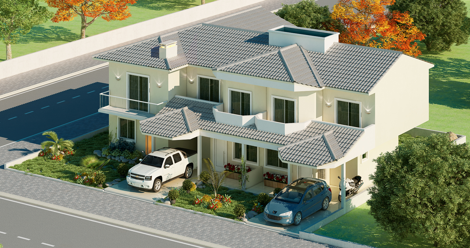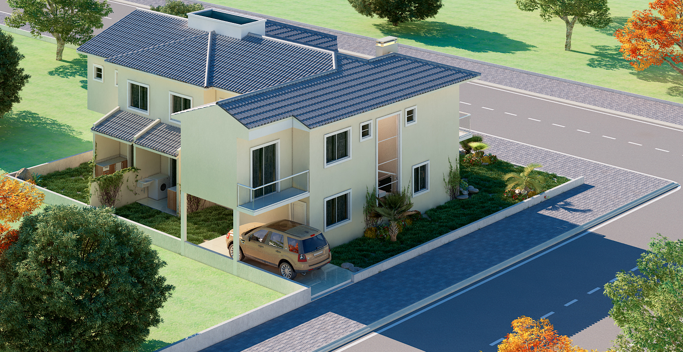 Soluções sustentáveis e valorização do terreno O projeto contempla soluções sustentáveis como aproveitamento da luz natural, ventilação eficiente e possibilidade de instalação de painéis solares. A implantação em terreno de esquina valoriza a fachada dupla e permite melhor aproveitamento da área externa, com jardim frontal e lateral.