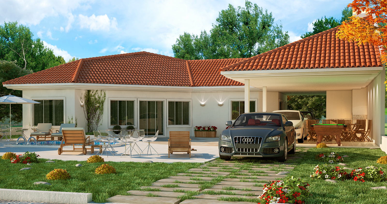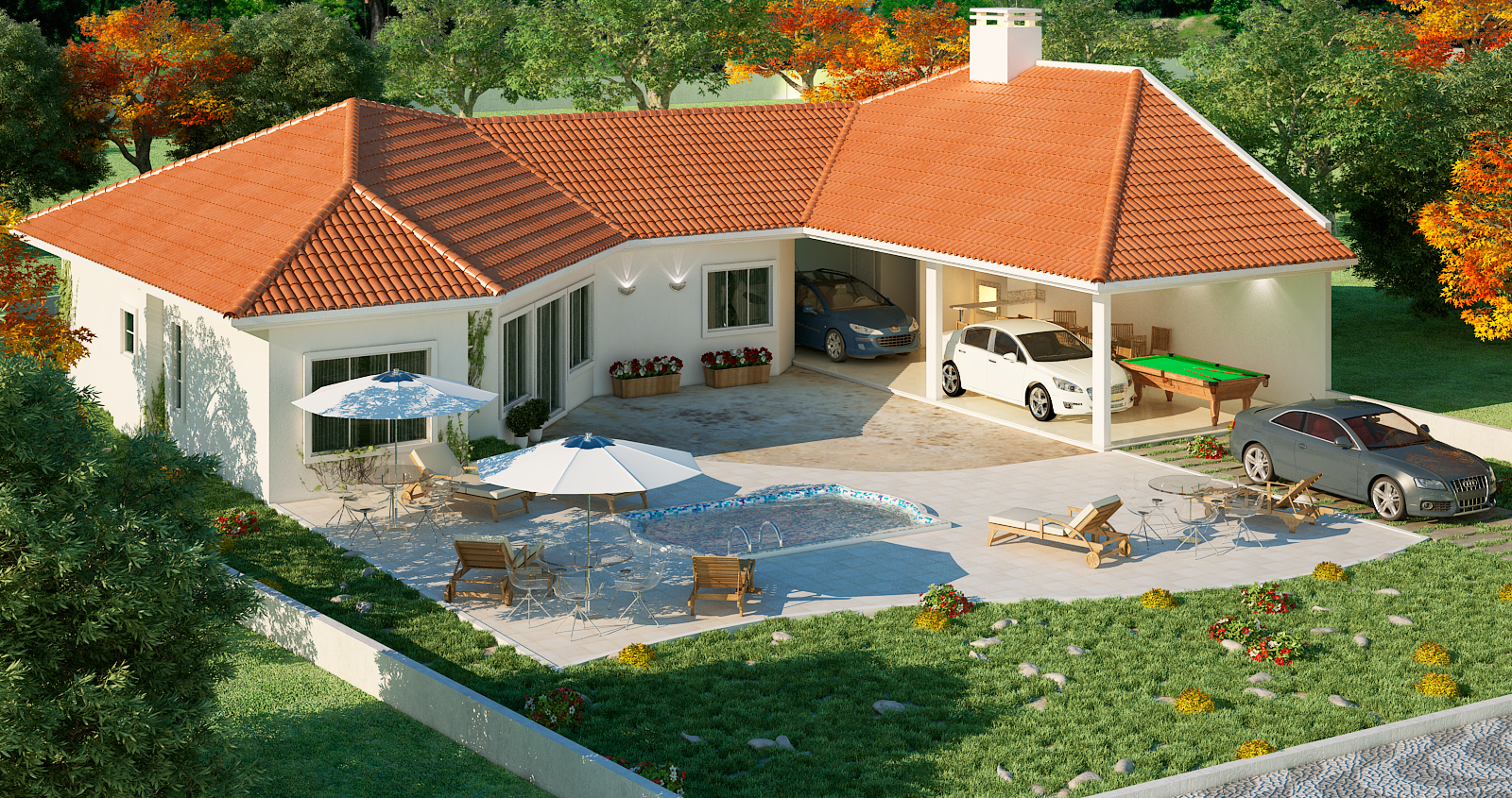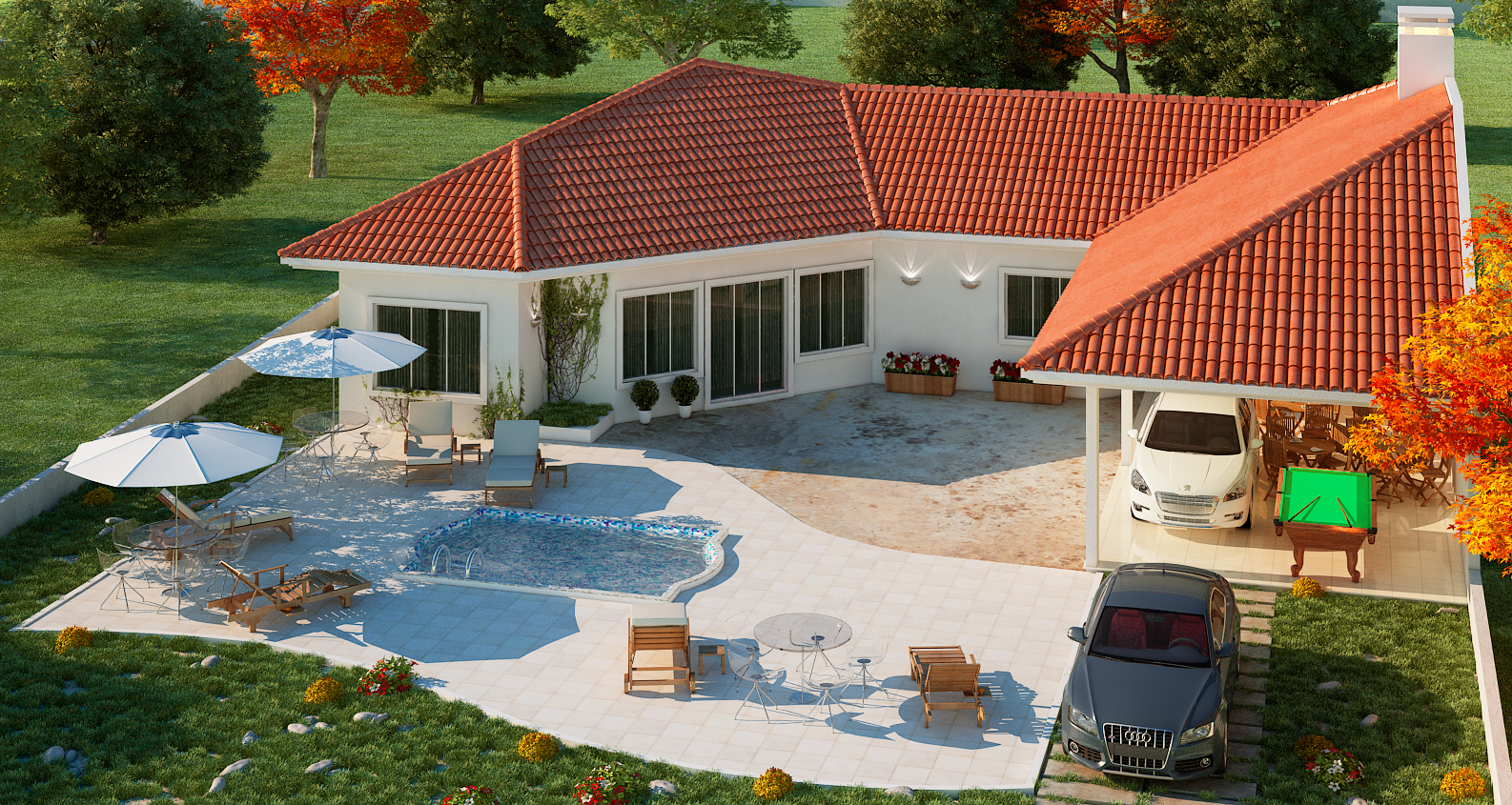 A área social é o grande destaque desta residência, integrando a Sala de TV e a Sala de Jogos / Festas em um único ambiente de entretenimento. Este espaço se conecta diretamente ao Pátio Descoberto, ampliando as possibilidades de lazer e recepção de visitas. A Cozinha, estrategicamente posicionada, mantém relação direta com a área gourmet e a churrasqueira, ideal para quem gosta de receber amigos. A Garagem coberta oferece comodidade e segurança, enquanto a área de serviço completa o programa com máxima funcionalidade. A integração entre interior e exterior valoriza todos os ambientes.