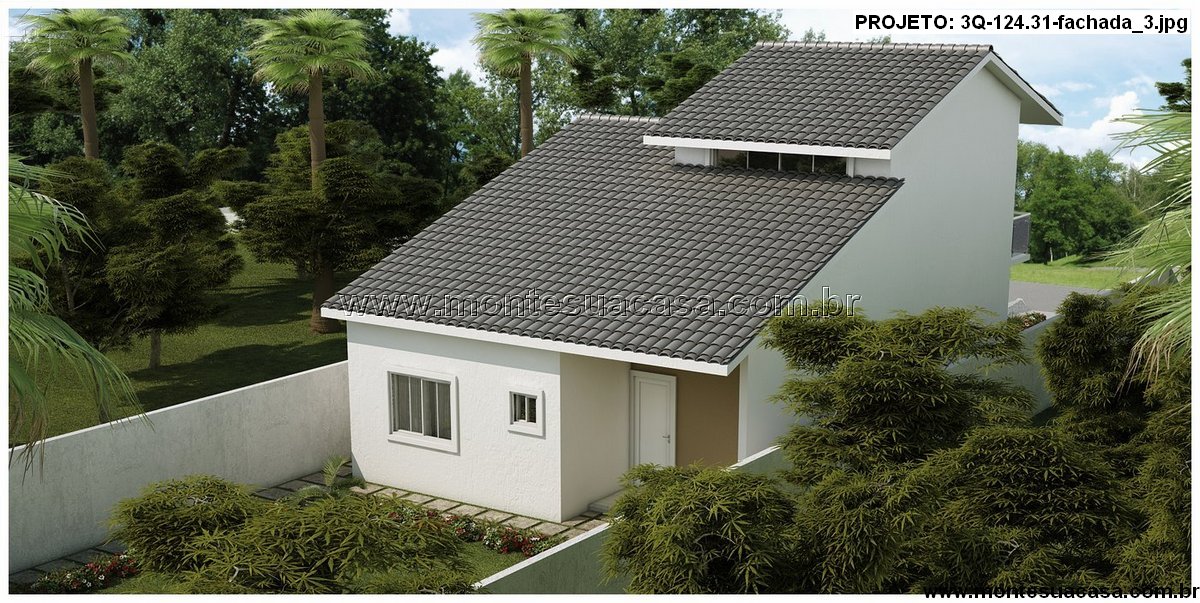 Os outros dois quartos possuem dimensões confortáveis e compartilham um banheiro social bem posicionado. A garagem coberta para um veículo integra-se visualmente ao corpo da casa, garantindo praticidade e estética.