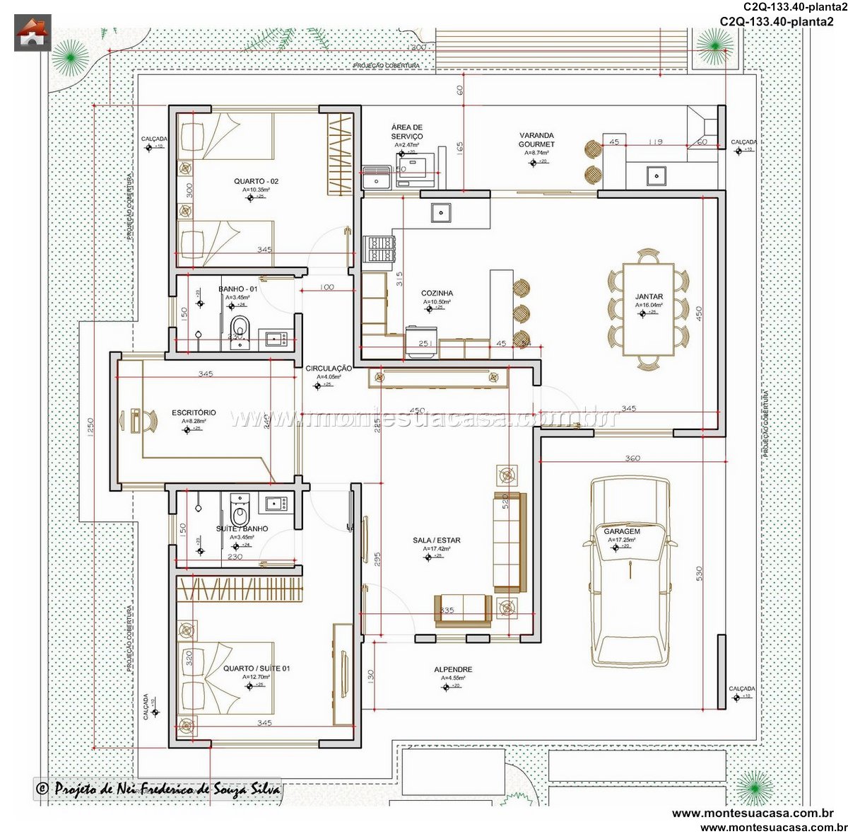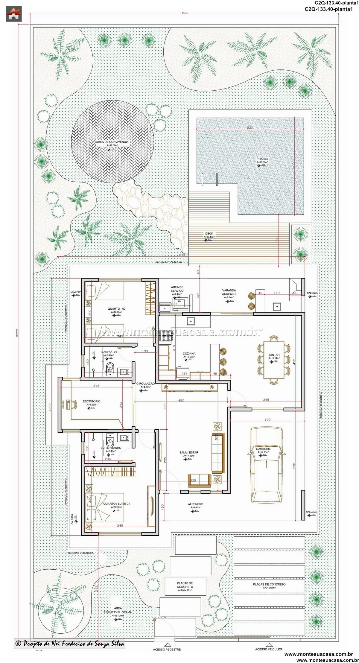 Este projeto de casa térrea de 133.40 metros quadrados apresenta uma distribuição inteligente e moderna, ideal para quem busca praticidade sem abrir mão do estilo. A planta foi cuidadosamente elaborada para criar uma harmonia perfeita entre todos os ambientes. Cada espaço foi dimensionado para oferecer máximo conforto e funcionalidade. A circulação fluida entre os cômodos garante uma experiência residencial agradável e eficiente.