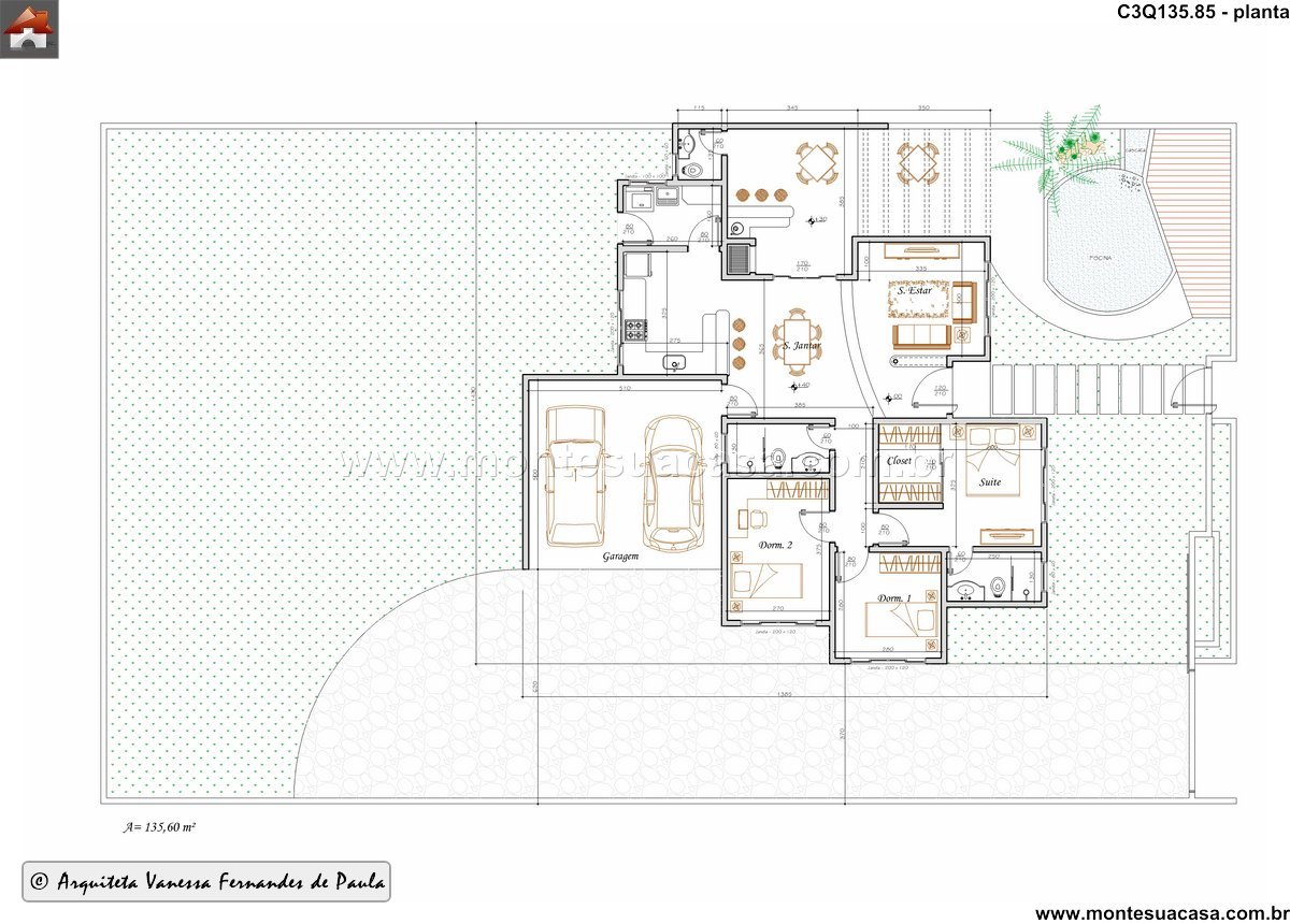 Este projeto residencial de 135.85m2 personifica o estilo de vida contemporâneo, priorizando a integração entre os ambientes e a funcionalidade. A arquitetura cria uma harmonia perfeita entre os espaços, promovendo uma sensação de amplitude e fluidez. A fachada e a distribuição interna foram pensadas para oferecer conforto, praticidade e um alto padrão estético, atendendo perfeitamente às necessidades de uma família moderna.