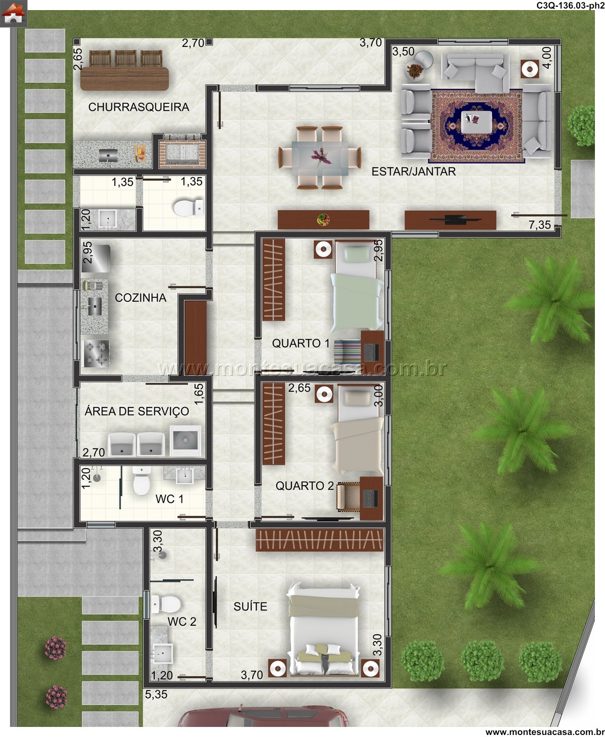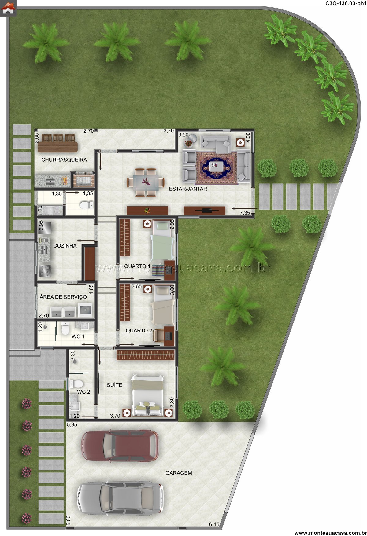 Apresentamos a você o projeto C3Q-136.03, uma casa térnea inteligente e aconchegante, perfeita para famílias que buscam um lar funcional sem abrir mão do conforto moderno. Com uma área total de 136.03 metros quadrados, esta residência foi meticulosamente planejada para oferecer um fluxo harmonioso entre os ambientes, promovendo uma experiência de moradia única e acolhedora.
