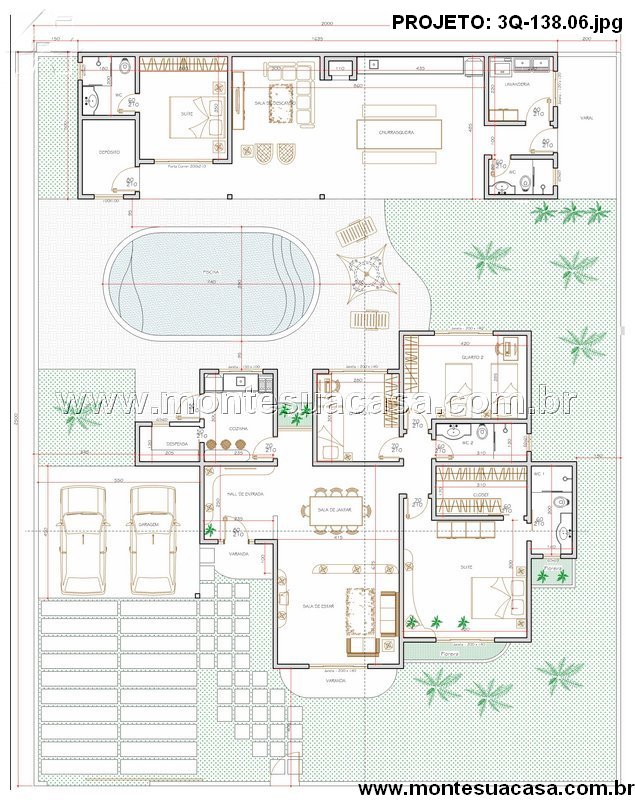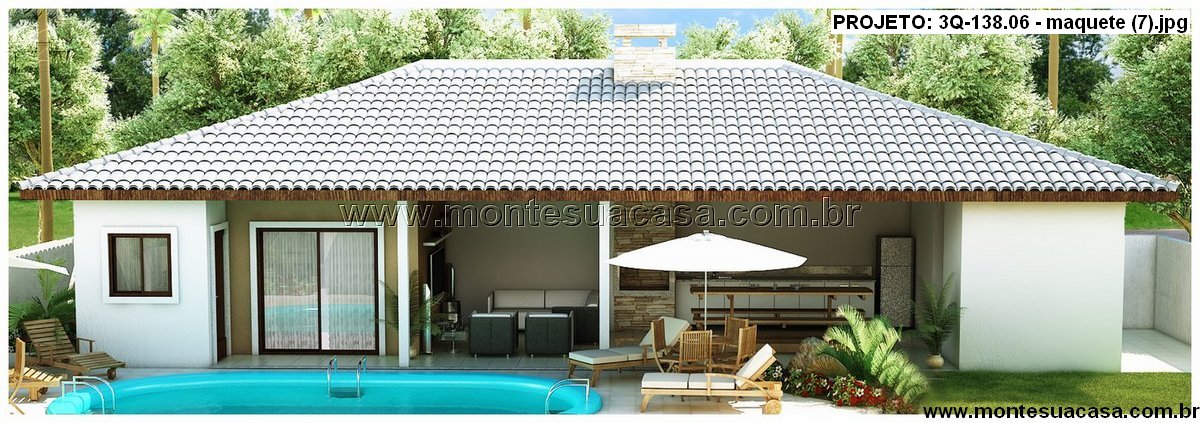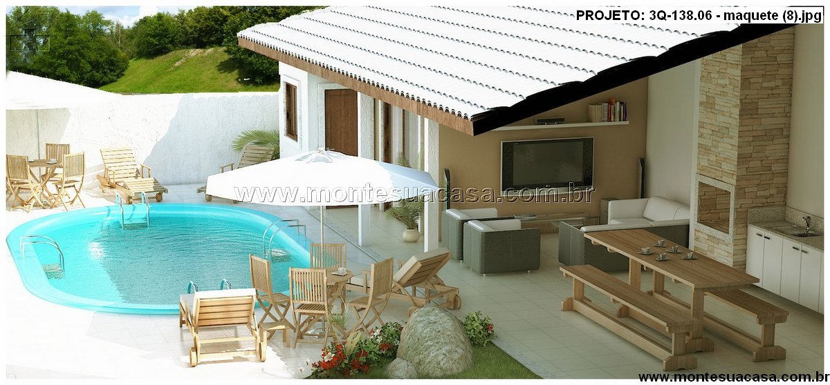 Projeto Casa Térrea com 3 Quartos e Área de Lazer – 138,06m²