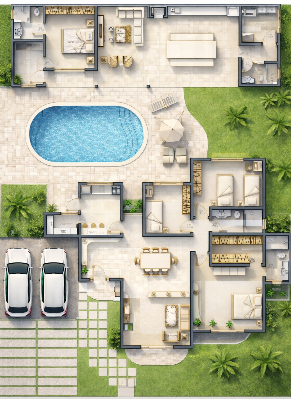 Este projeto combina elegância, praticidade e aconchego, sendo uma excelente opção para quem busca um lar moderno, confortável e pronto para viver grandes momentos em família.