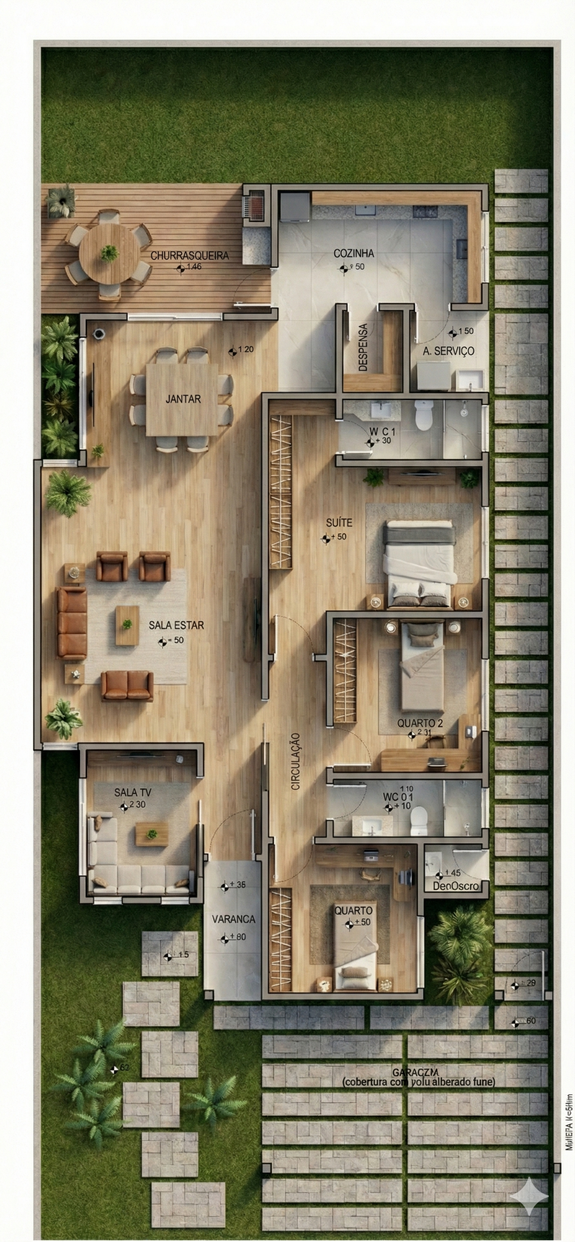 Este projeto é ideal para quem busca um lar moderno e funcional, com ambientes amplos e um design sofisticado que valoriza o bem-estar e a convivência familiar.