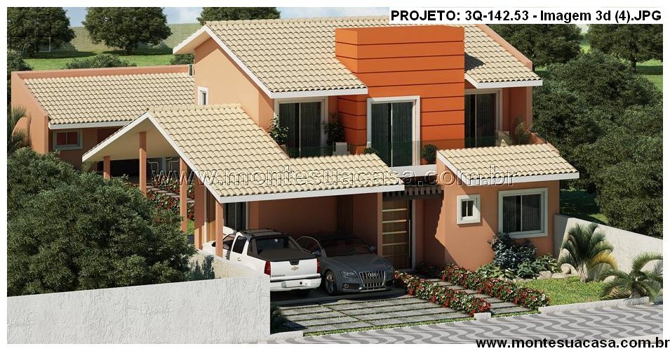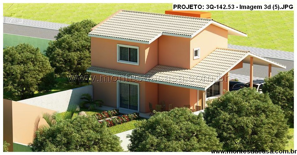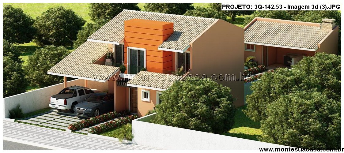 O projeto de sobrado com 3 quartos e área gourmet integrada – 142,53m² é a escolha ideal para quem busca conforto, funcionalidade e elegância em um único espaço. Sua fachada moderna combina volumes equilibrados e telhado tradicional, transmitindo imponência e acolhimento. O destaque central em tom alaranjado dá personalidade à construção, criando um contraste harmônico com as demais cores suaves e o telhado cerâmico.