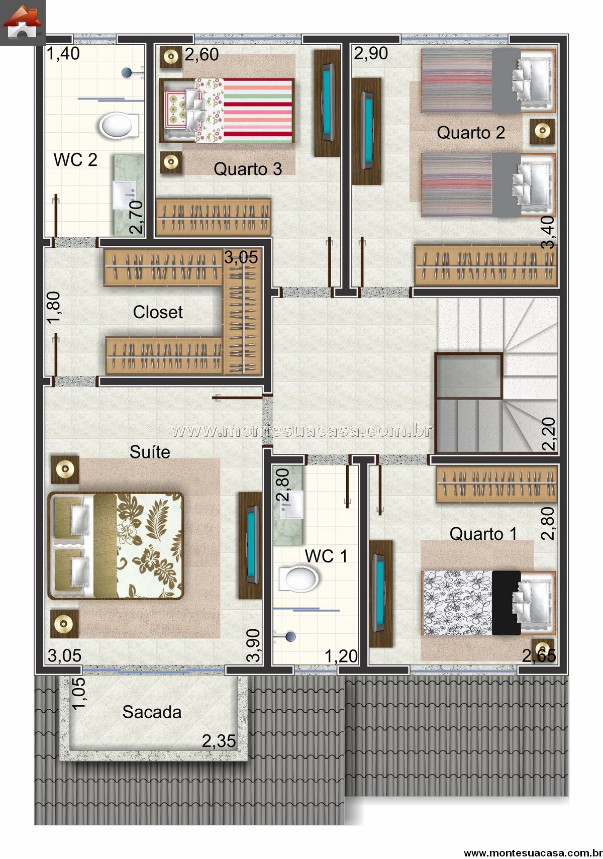 O andar superior é um domínio dedicado ao descanso e à privacidade, abrigando quatro dormitários que atendem às necessidades de toda a família. A suíte master se destaca como um verdadeiro refúgio, contando com um closet exclusivo que oferece organização e praticidade para o guarda-roupa. Os demais quartos são igualmente confortáveis e bem dimensionados, podendo servir como dormitórios infantis, escritório ou quarto de hóspedes. Dois banheiros completos atendem a este pavimento, sendo um deles privativo da suíte e o outro de uso comum, otimizando a rotina da família pela manhã. O layout assegura que os ambientes de repouso permaneçam isolados do burburinho da área social, garantindo noites de sono tranquilas e momentos de verdadeiro relaxamento.