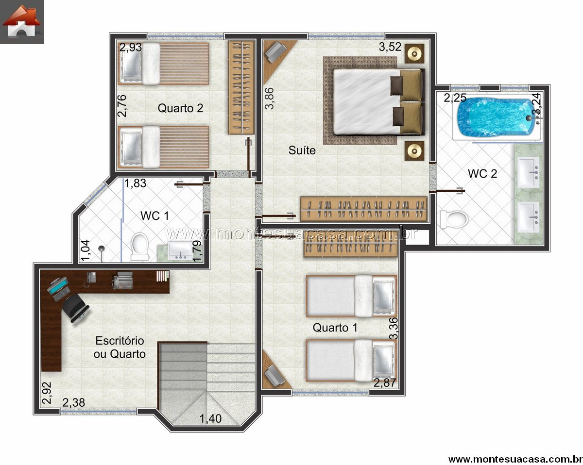 O projeto apresenta uma circulação eficiente, com corredores bem dimensionados e aproveitamento inteligente de cada metro quadrado. O equilíbrio entre áreas sociais e íntimas faz deste sobrado uma opção excelente para quem busca uma residência moderna e funcional.