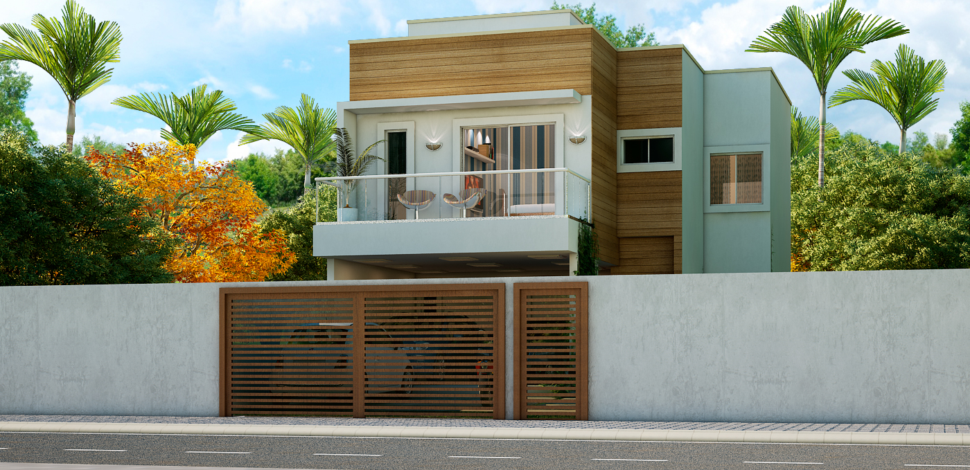 Sobrado moderno com três quartos e sacada integrada Este projeto de sobrado com 149,75m² foi desenvolvido para oferecer funcionalidade, conforto e estética contemporânea em um terreno compacto. A fachada combina revestimentos em madeira e pintura clara, criando um visual elegante e acolhedor. O uso de grandes esquadrias permite excelente iluminação natural e ventilação cruzada nos ambientes internos.