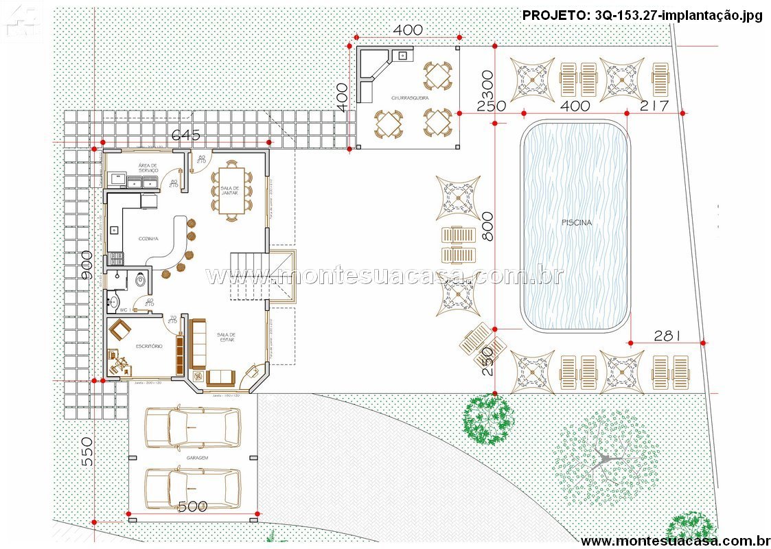 Projeto de Sobrado com 3 Quartos e Piscina – 153,27m²