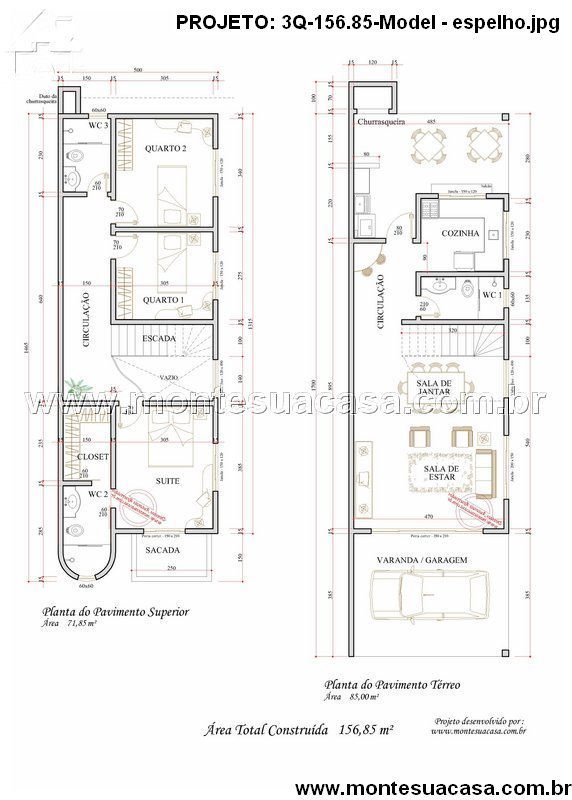 Projeto de Sobrado com 3 Quartos e Churrasqueira Integrada