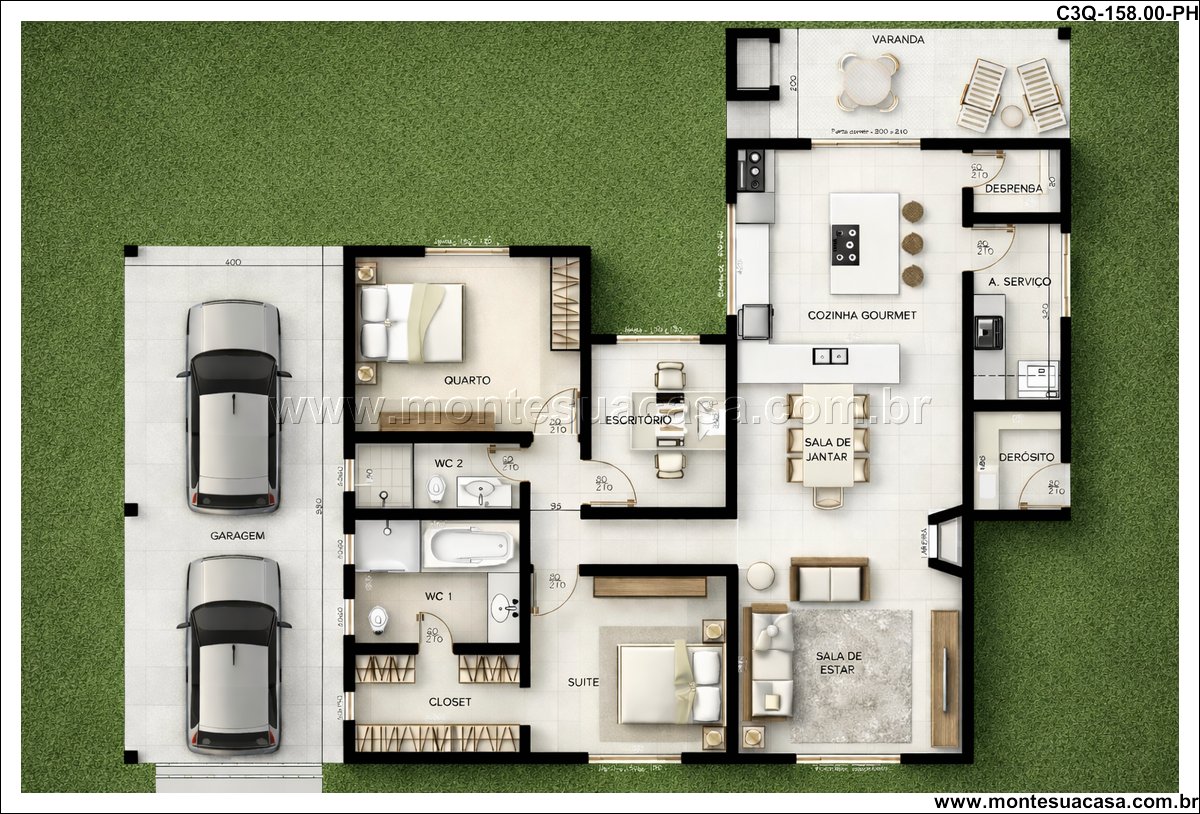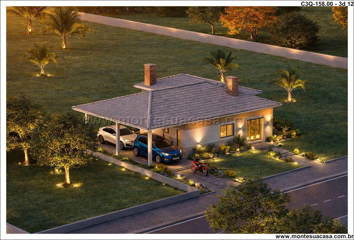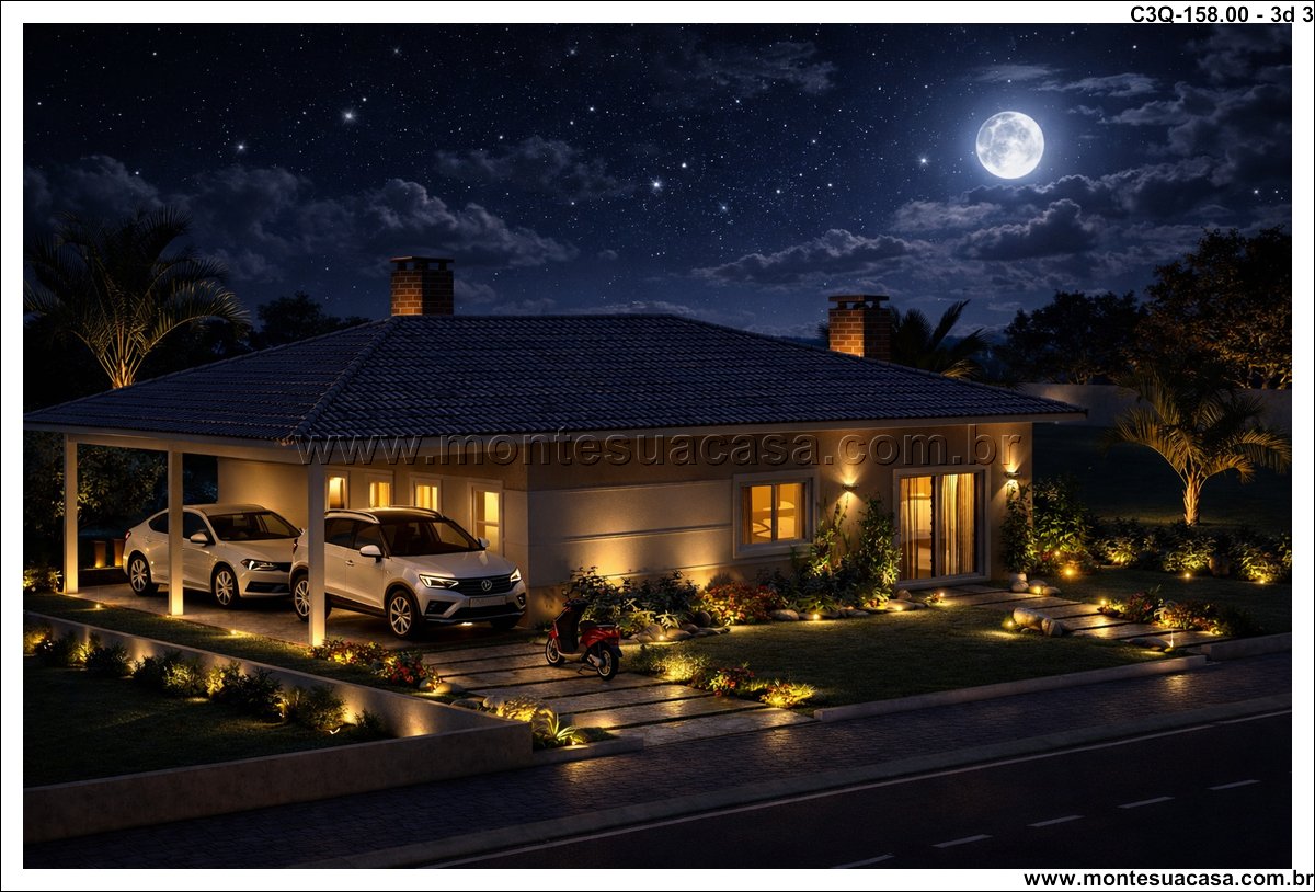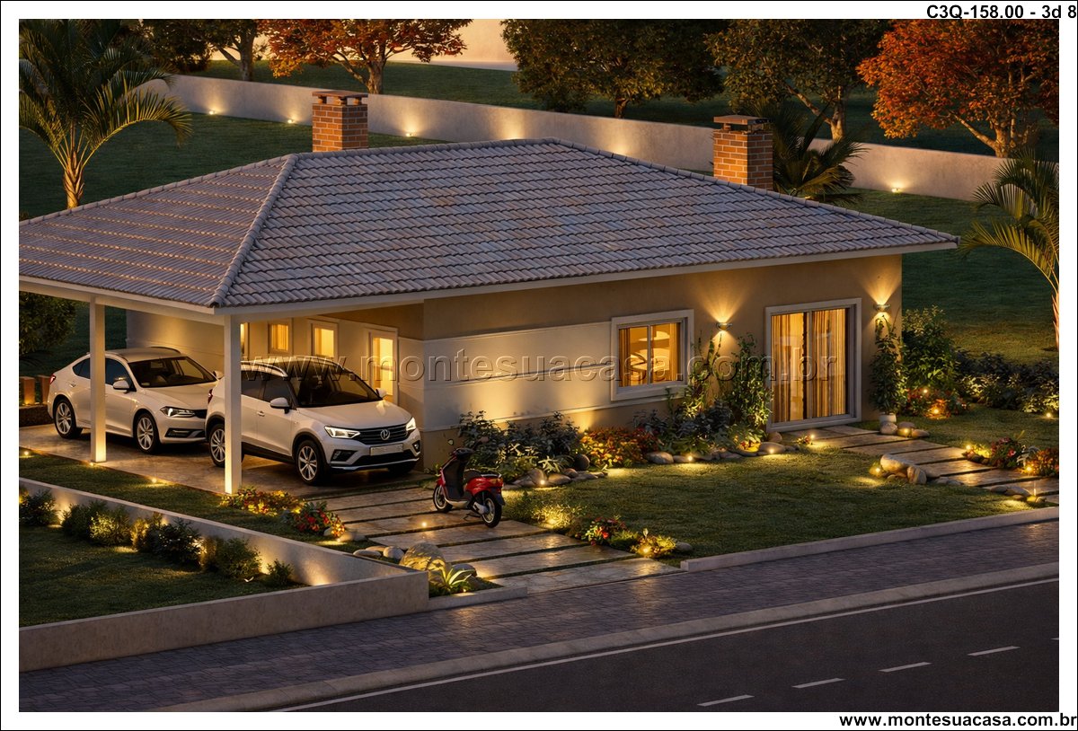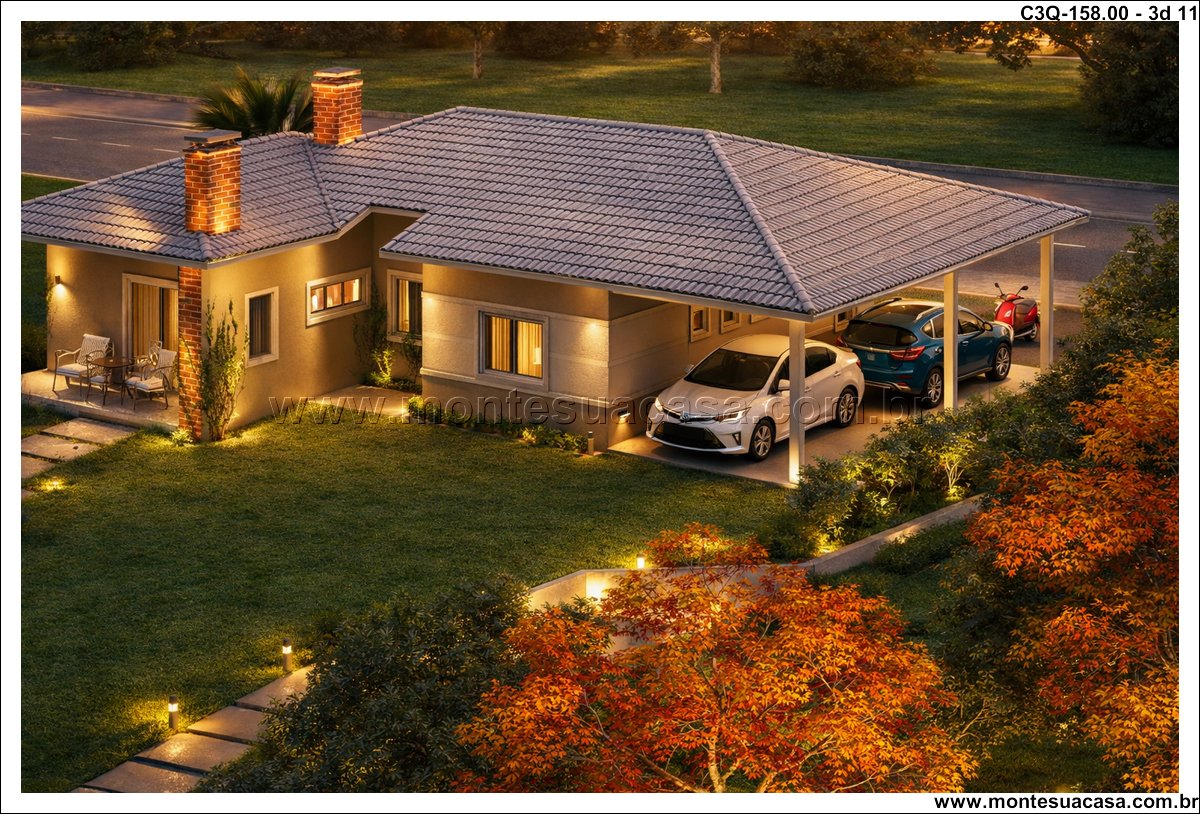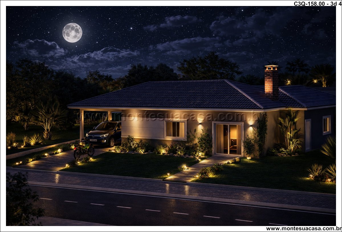 Este projeto de 158 m² apresenta uma casa térrea de 3 quartos desenvolvida para quem busca funcionalidade, conforto e um layout organizado. A planta combina ambientes amplos, circulação estratégica e uma fachada contemporânea com telhado aparente. A proposta atende famílias que desejam praticidade no dia a dia sem abrir mão de ambientes bem resolvidos e conectados ao exterior.