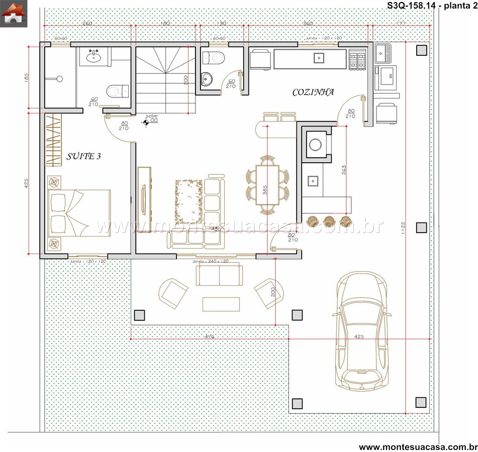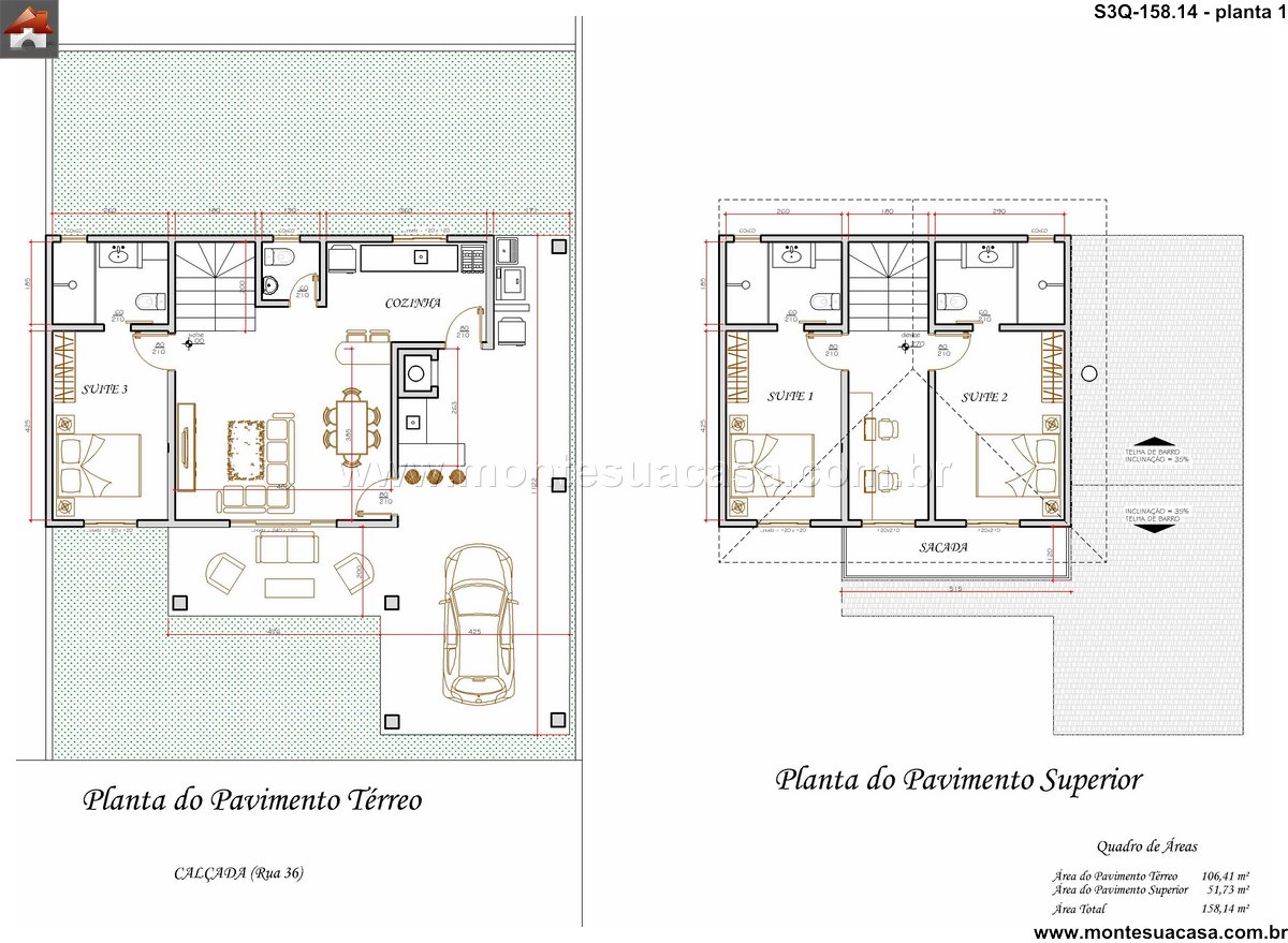 Este sobrado de 158,14m² foi desenvolvido para famílias que buscam conforto, funcionalidade e integração entre os ambientes. A planta prioriza circulação fluida, excelente aproveitamento dos espaços e ventilação natural em todos os cômodos. O pavimento térreo reúne as áreas sociais e uma suíte adicional, enquanto o pavimento superior concentra duas suítes amplas conectadas a uma charmosa sacada frontal.
