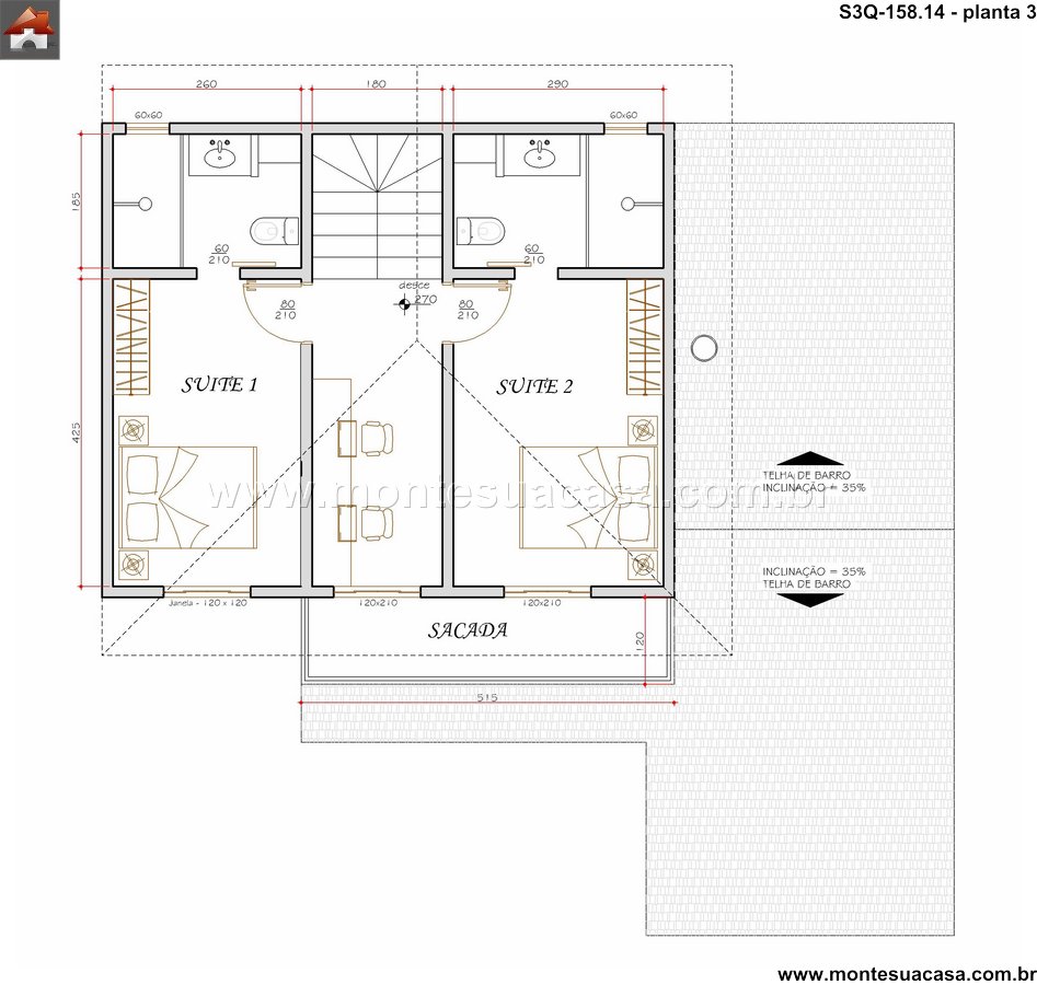 Pavimento Superior com Duas Suítes