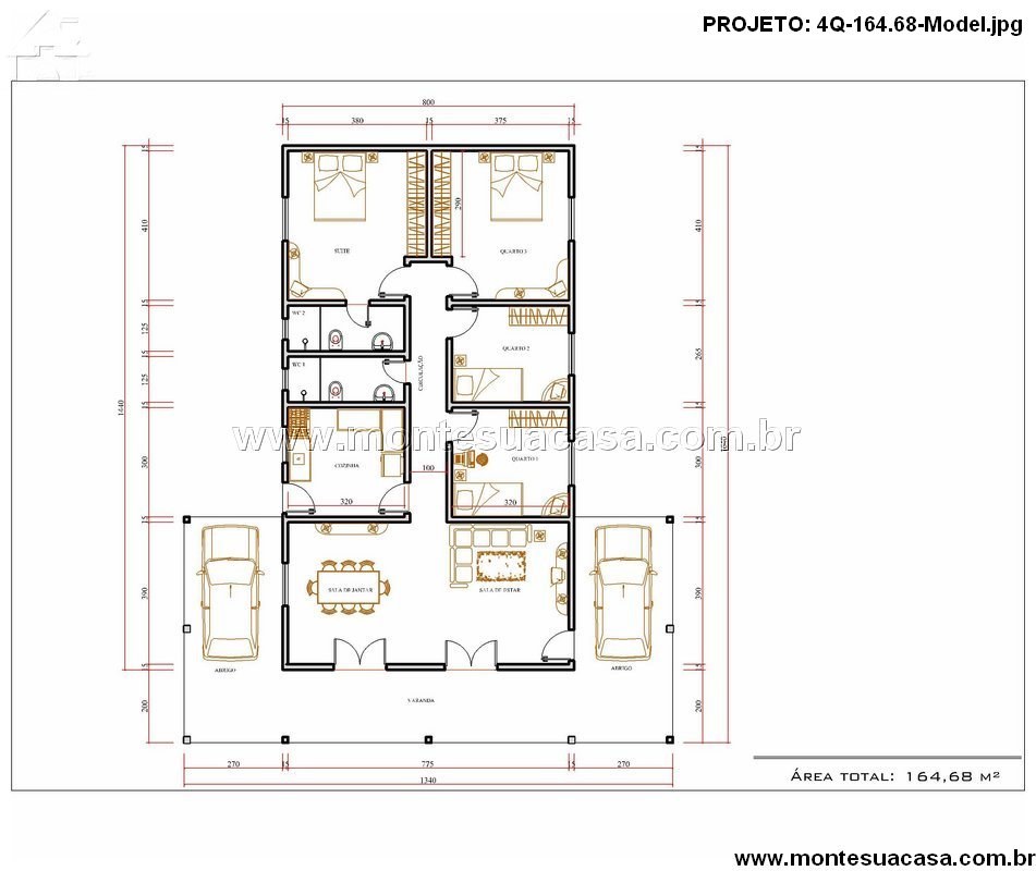Este projeto de 164,68 m² oferece uma planta funcional e acolhedora, ideal para famílias que valorizam conforto, privacidade e integração dos ambientes. A casa foi planejada em um único pavimento, priorizando a praticidade no dia a dia e a acessibilidade para todos os moradores.