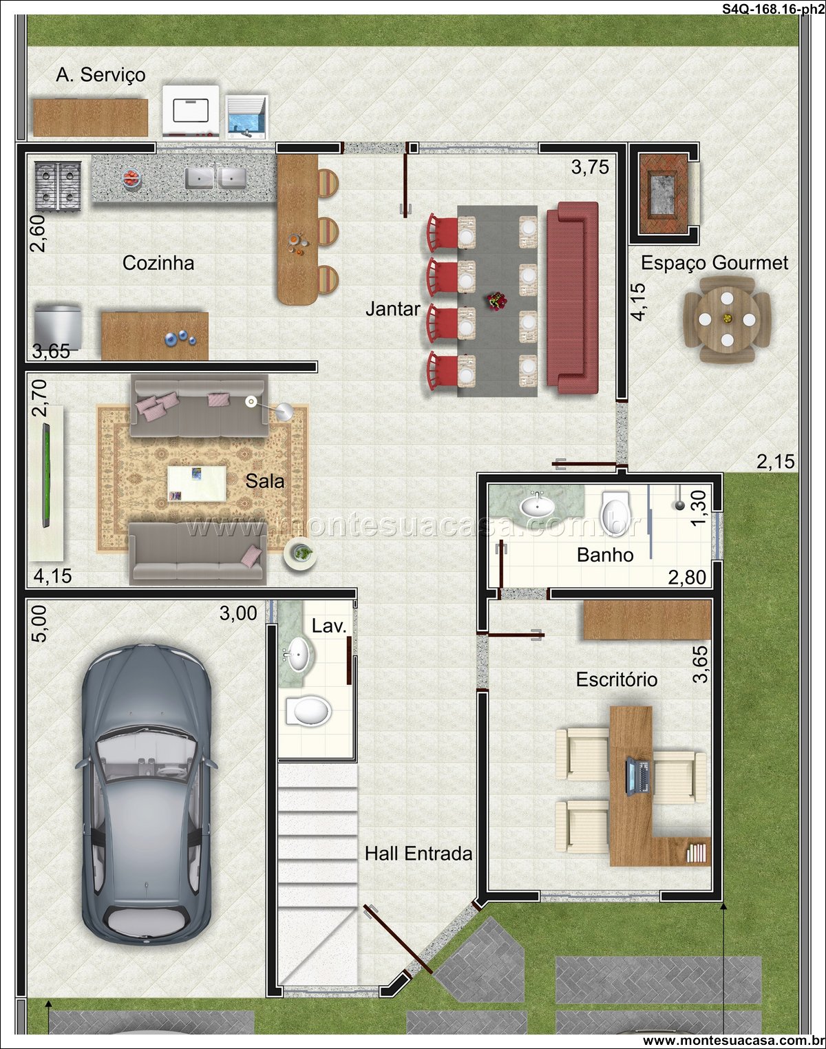 Este projeto de sobrado de 168.16m² foi meticulosamente planejado para oferecer o máximo em conforto, estilo e praticidade para a vida moderna. A distribuição inteligente dos ambientes ao longo de dois pavimentos cria uma harmonia perfeita entre espaços sociais e privativos, garantindo privacidade e convívio familiar.