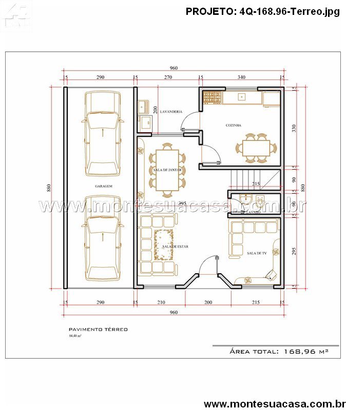 Este projeto de sobrado moderno, com área total de 168,96 m², foi desenvolvido para famílias que valorizam conforto, funcionalidade e um design contemporâneo. Com uma fachada elegante e volumetria equilibrada, o projeto se destaca pela integração entre os ambientes e pelo aproveitamento inteligente dos espaços internos.