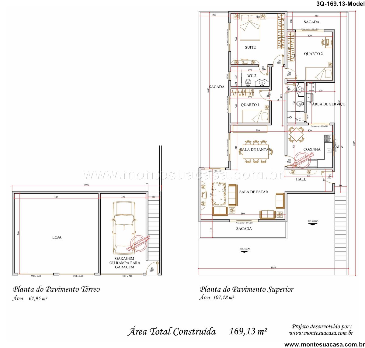Este projeto arquitetônico apresenta um sobrado funcional e versátil, ideal para quem busca integrar espaço comercial e residência em um único terreno. Com área total construída de 169,13 m², o imóvel distribui-se em dois pavimentos bem definidos, oferecendo praticidade e conforto para diferentes perfis de moradores e empreendedores.