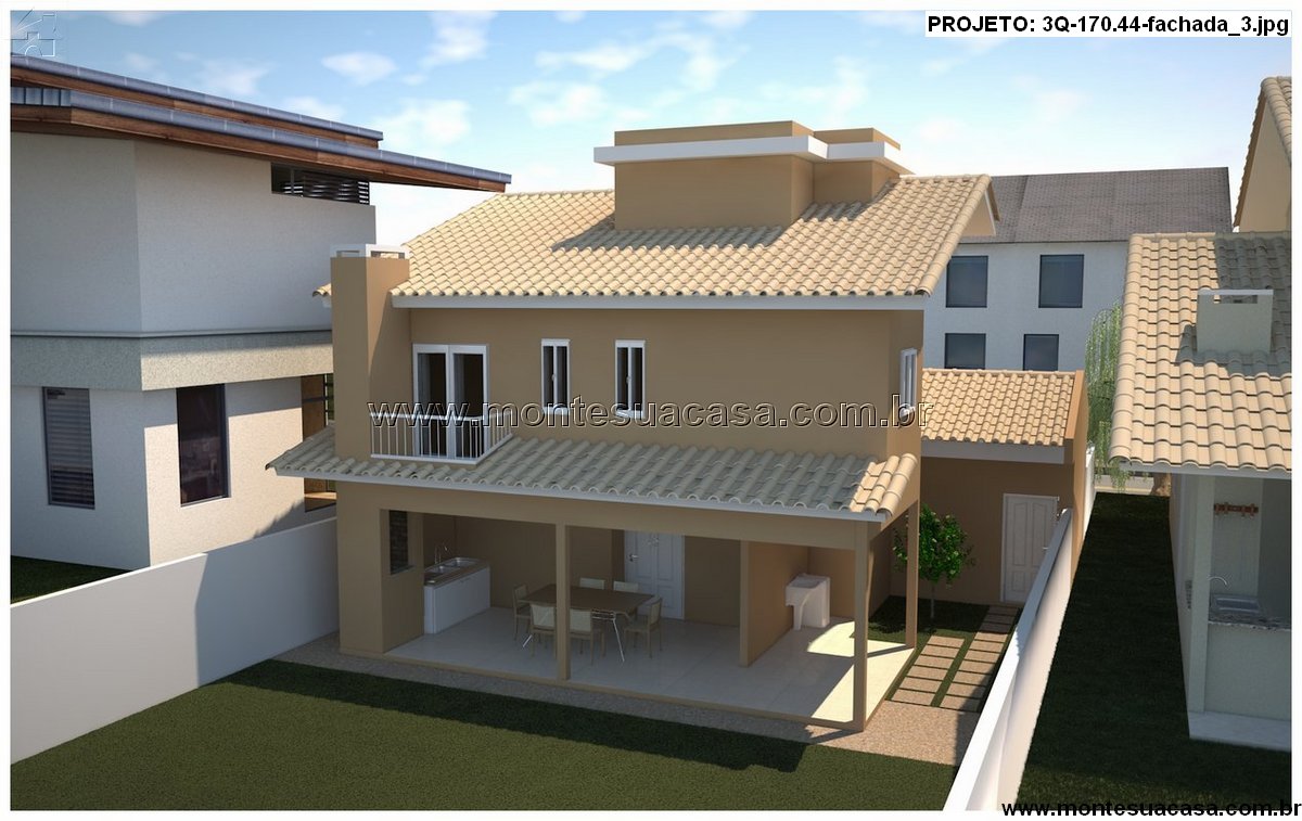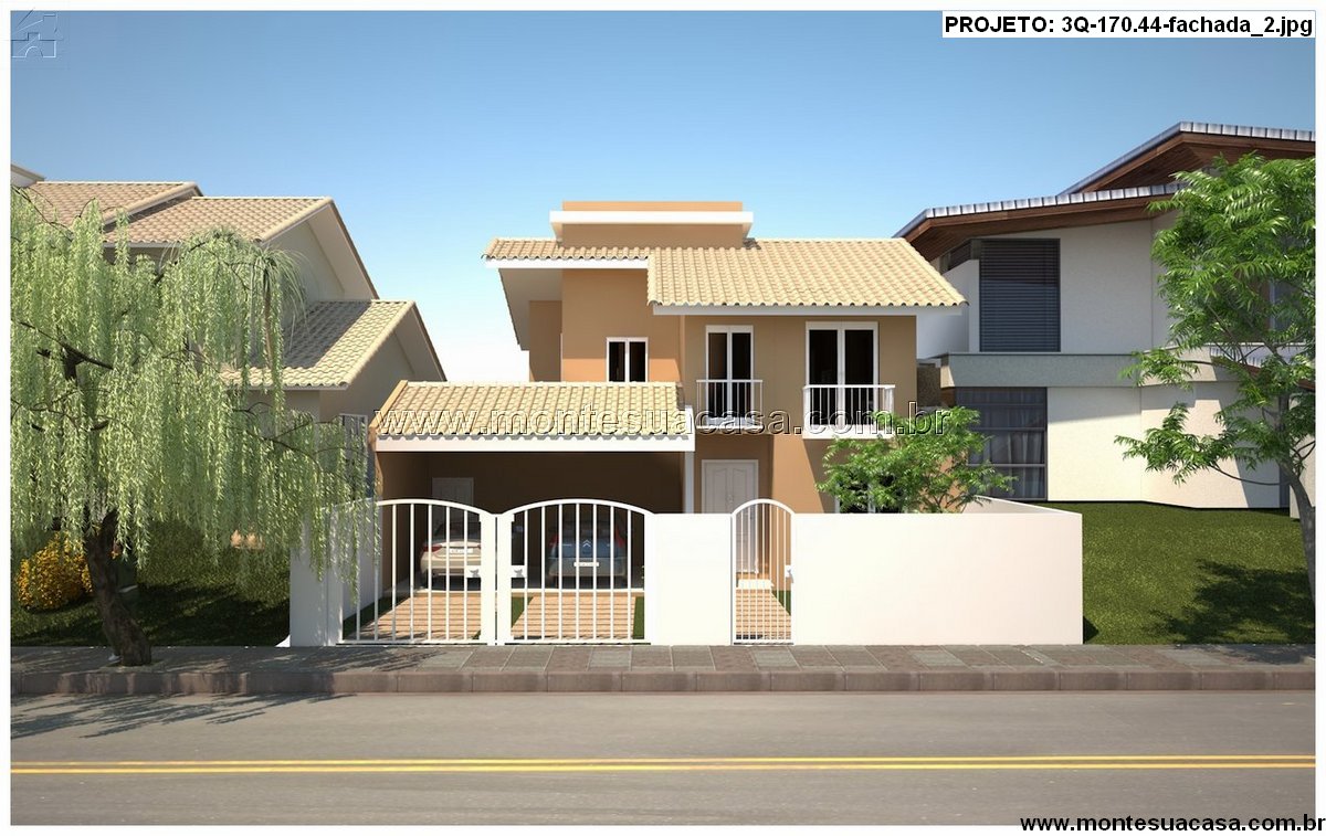 Este projeto de sobrado moderno com 170,44m² é uma excelente opção para famílias que buscam conforto, integração e funcionalidade em um único projeto. A fachada apresenta linhas harmônicas, telhado cerâmico e varandas que valorizam o visual contemporâneo, transmitindo equilíbrio e elegância.