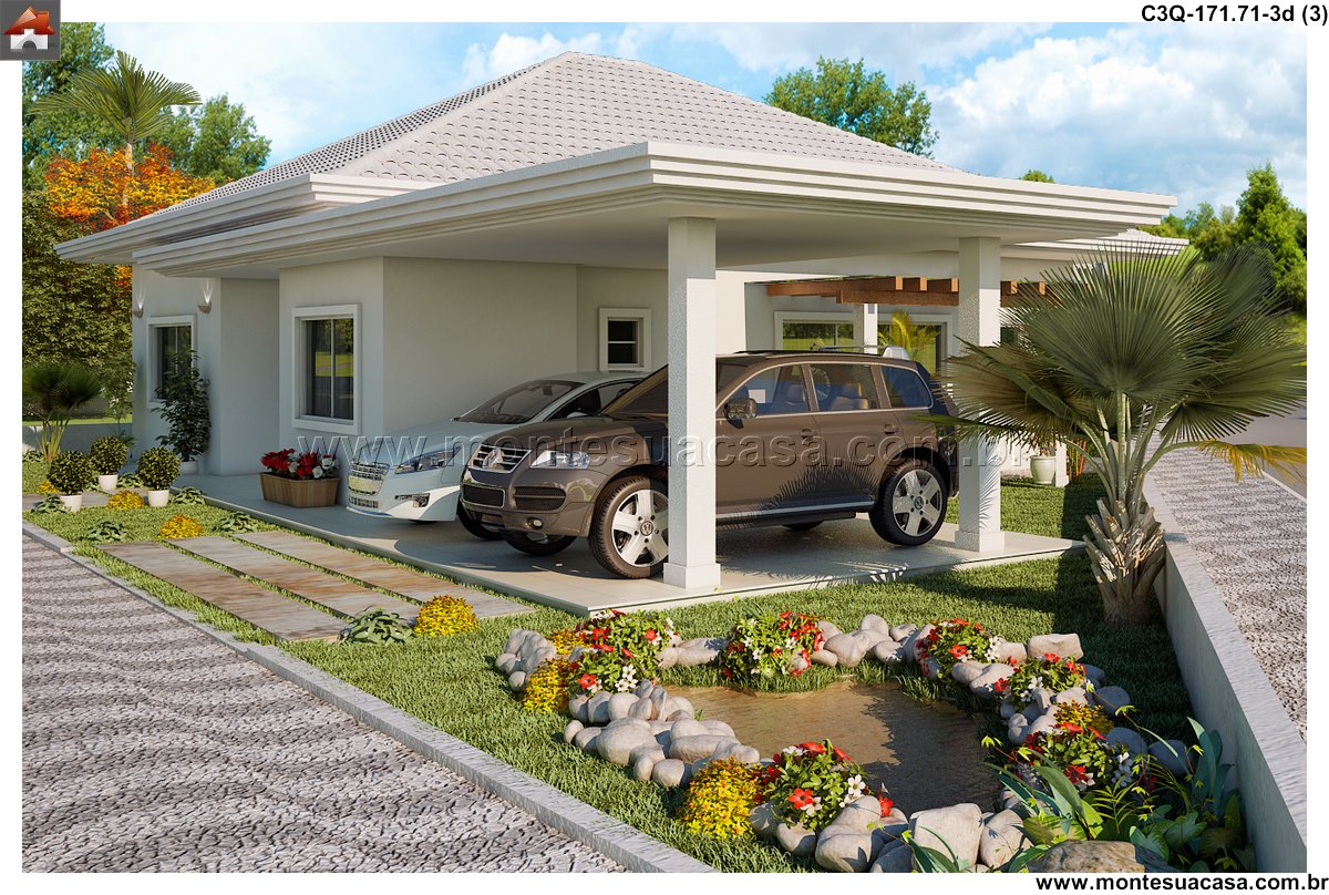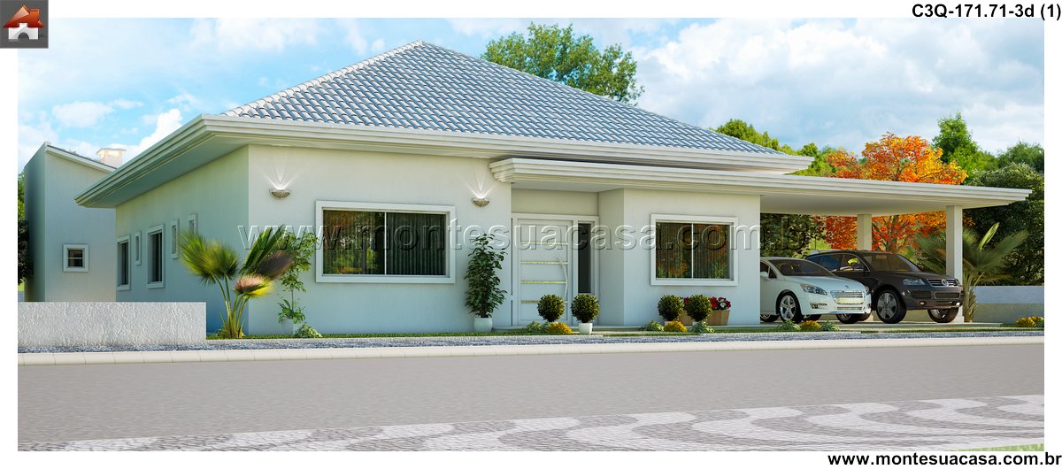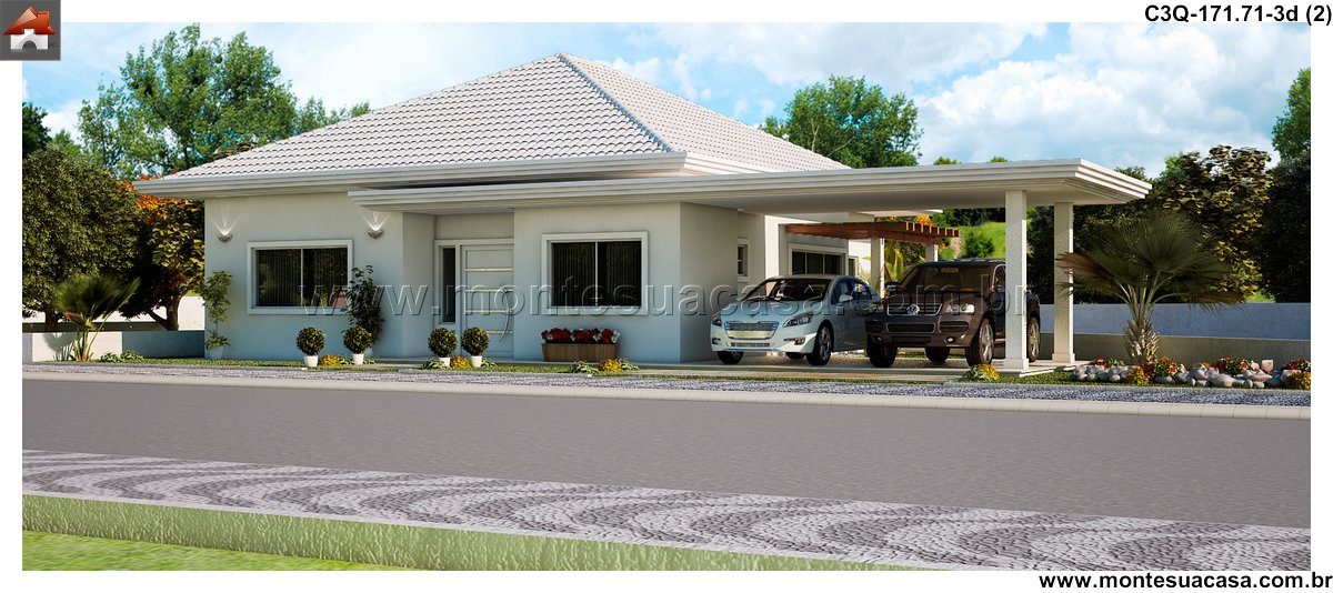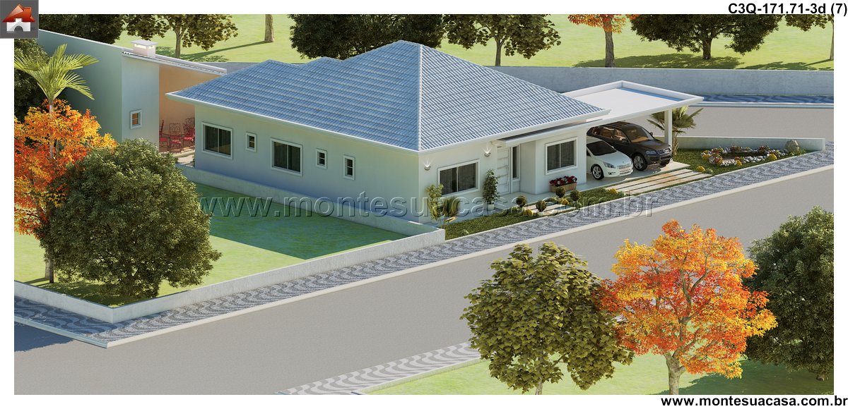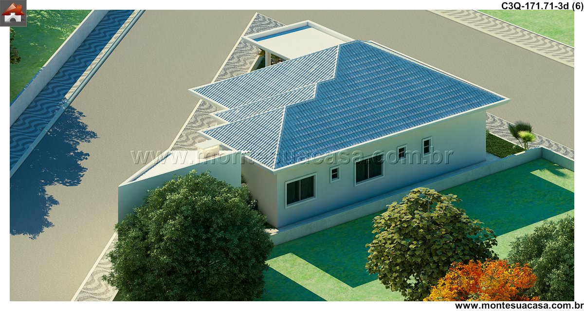 Este projeto de 171,71 m² foi desenhado para um lote triangular e inclinado, explorando cada metro disponível sem comprometer conforto. A implantação frontal acomoda garagem coberta para dois carros, garantindo praticidade imediata ao chegar. A circulação externa foi organizada para evitar desperdício de área, concentrando jardins laterais e fundos em faixas funcionais que valorizam a casa sem criar manutenção desnecessária.