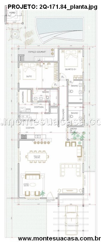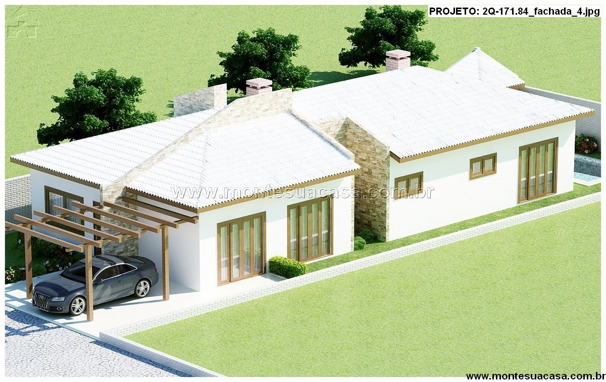 Este projeto de casa térrea com 171,84m² combina elegância, praticidade e lazer em um único ambiente. Com um design contemporâneo e acabamentos sofisticados, a residência foi planejada para oferecer conforto e funcionalidade, ideal para famílias que valorizam momentos de convivência e bem-estar. A fachada moderna se destaca pelo uso equilibrado de pedras naturais e madeira, elementos que trazem aconchego e harmonia à arquitetura.