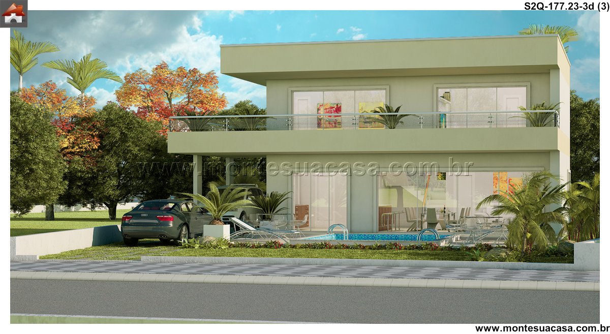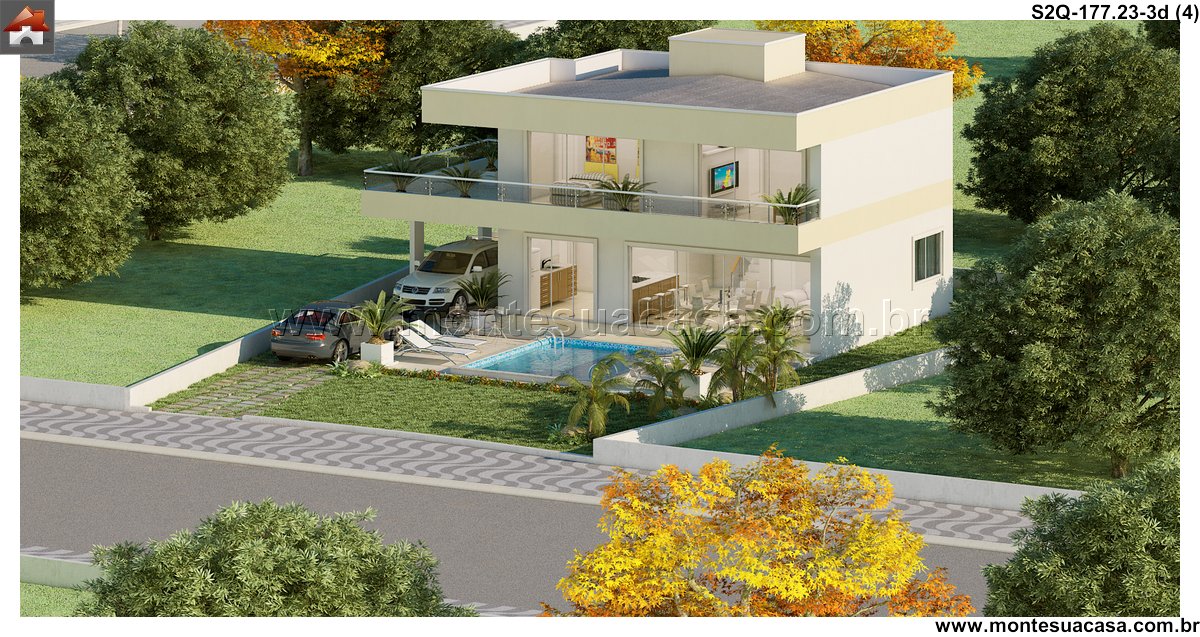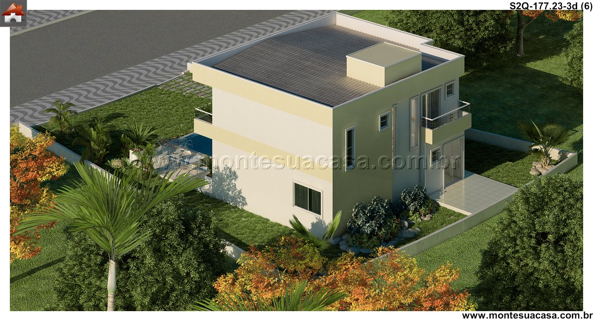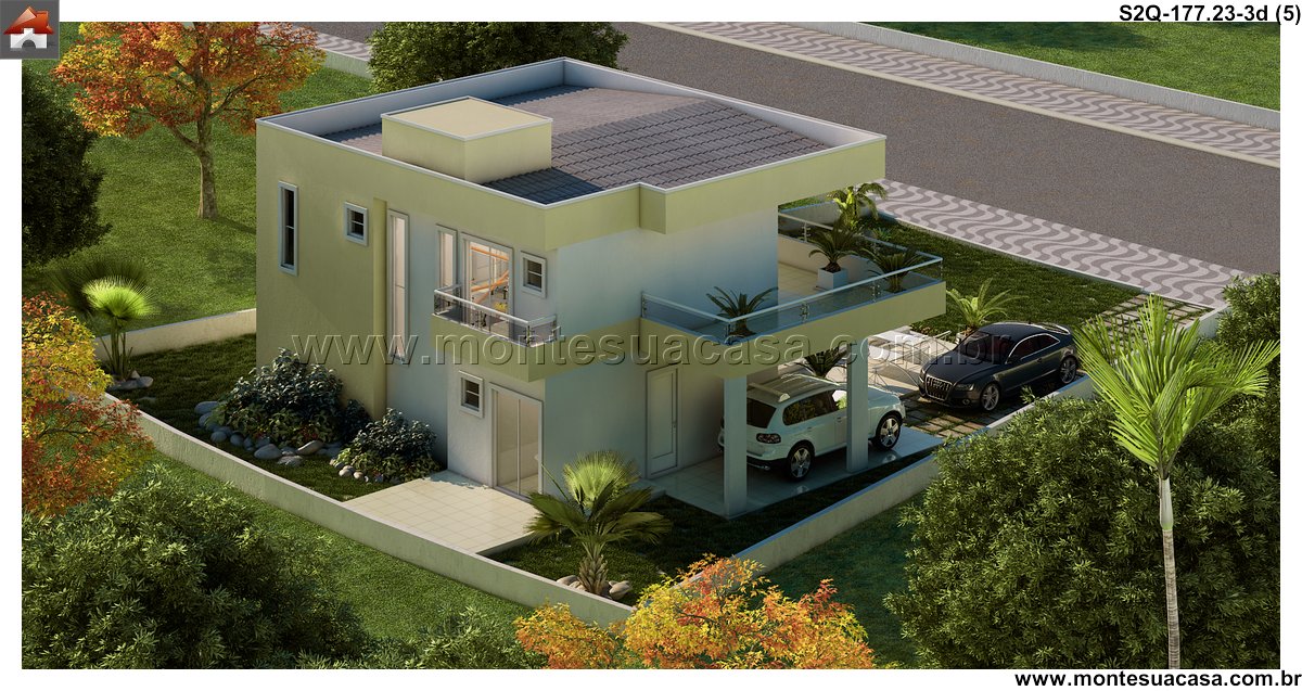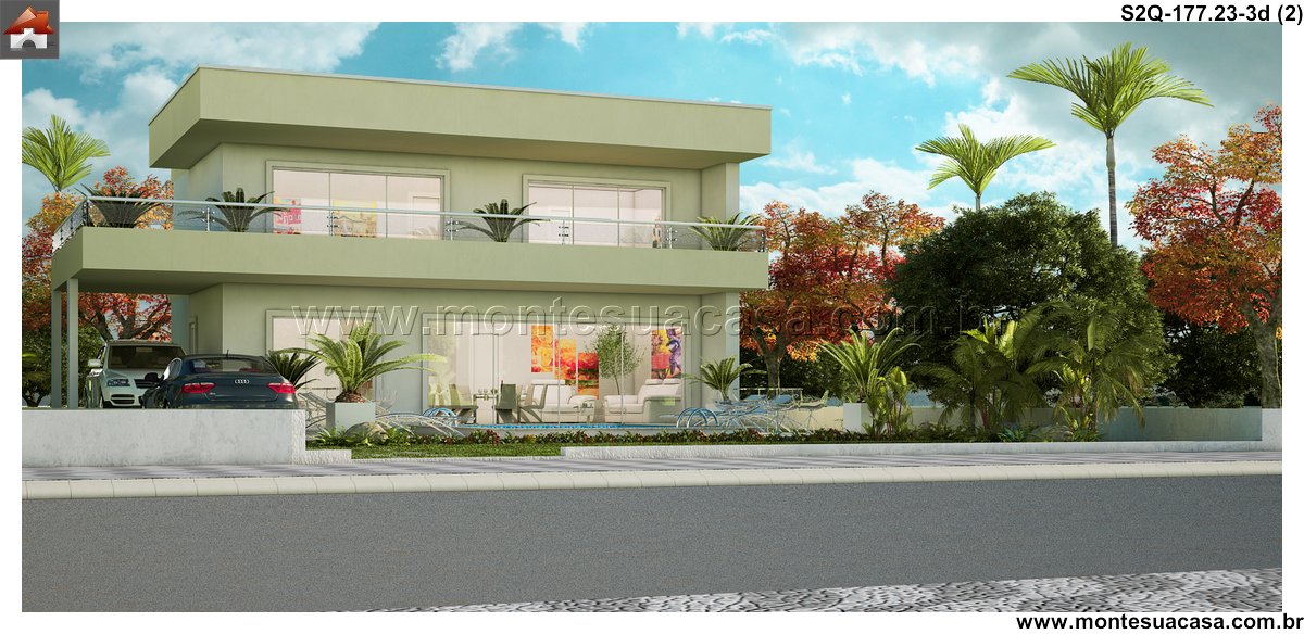 Este sobrado moderno de 177,23m² foi concebido para quem busca uma residência funcional, elegante e com forte presença visual. O projeto utiliza linhas retas, balanços amplos e grandes superfícies envidraçadas para criar uma composição leve, aberta e totalmente conectada ao exterior. A fachada com dois pavimentos destaca o terraço contínuo e a varanda térrea, reforçando a horizontalidade e a sensação de amplitude.