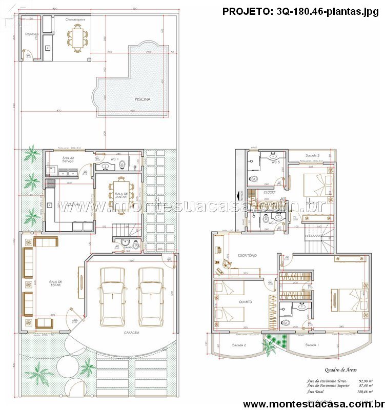 Com excelente aproveitamento do terreno e circulação fluida entre os ambientes, este projeto é ideal para famílias que valorizam o bem-estar, o lazer e a estética contemporânea. O sobrado 3Q-180.46 traduz o equilíbrio entre funcionalidade, conforto e beleza arquitetônica.
