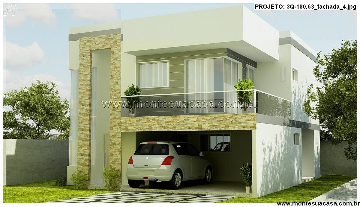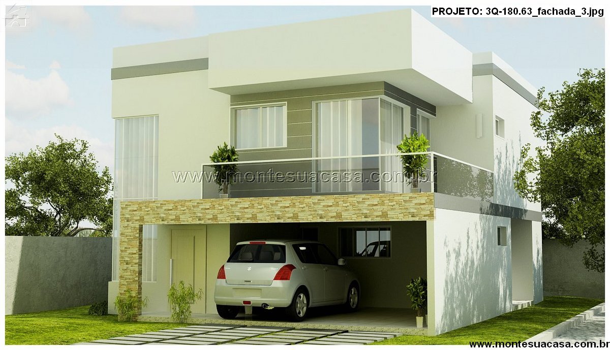O projeto 3Q-180.63 é um sobrado moderno com 180,63m², desenvolvido para quem busca conforto, elegância e funcionalidade em cada ambiente. Sua fachada contemporânea combina volumes marcantes, revestimento em pedra natural e linhas retas que valorizam o design. Grandes aberturas em vidro trazem luminosidade natural e integração visual entre os espaços internos e o exterior.
