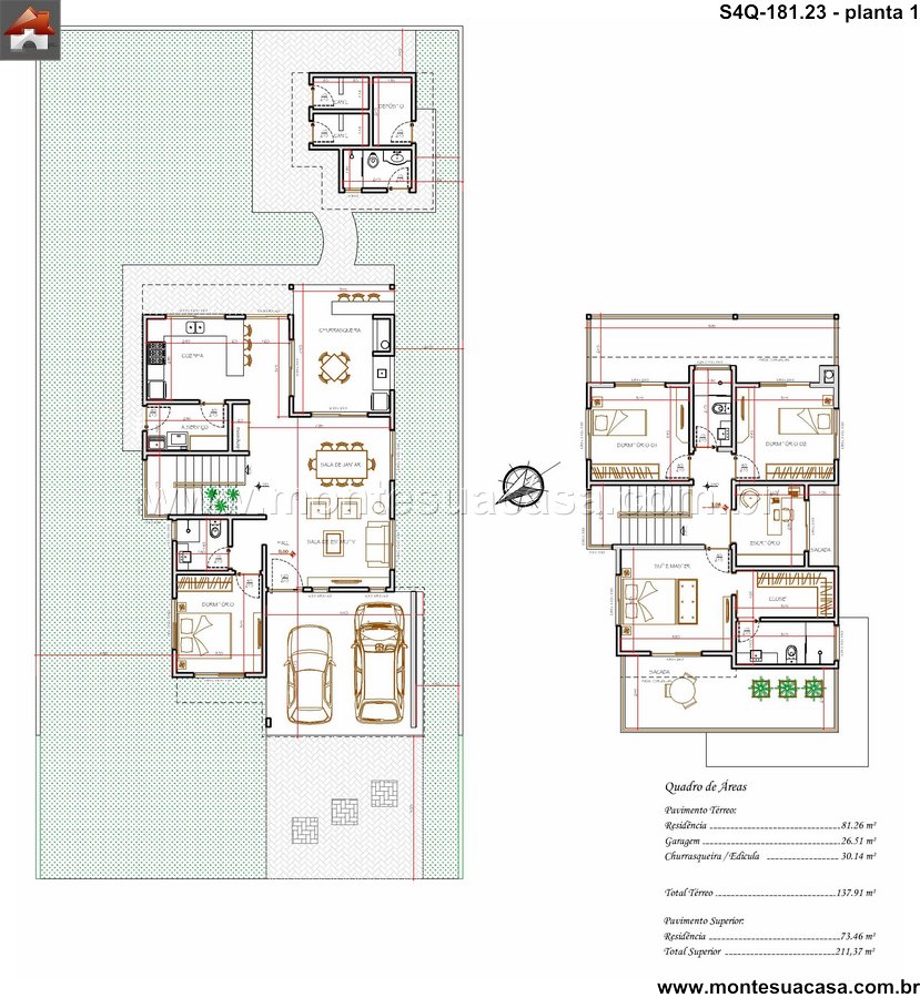 Este projeto de sobrado contemporâneo, com 181.23 metros quadrados, foi meticulosamente planejado para oferecer conforto, praticidade e elegância para a família moderna. Com uma distribuição inteligente dos ambientes, a residência se destaca pela fluidez entre os espaços, promovendo uma convivência harmoniosa e acolhedora. A arquitetura valoriza a integração de áreas, criando um senso de amplitude e continuidade que encanta à primeira vista.