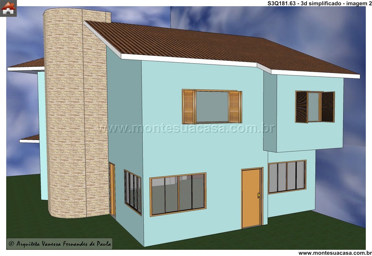 Este projeto de sobrado de 3 quartos com 181,63m² é ideal para famílias que valorizam conforto, estética e funcionalidade. Com arquitetura contemporânea e elementos marcantes, como parede curva com blocos de vidro e torre cilíndrica em pedra, a fachada transmite sofisticação e personalidade.