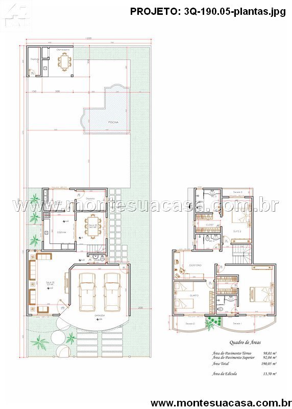 Com uma área total de 190,05 m², este sobrado foi projetado para oferecer conforto térmico e praticidade em cada detalhe. O design contemporâneo aliado ao espaço gourmet com piscina torna o projeto ideal para quem busca uma casa moderna e completa.