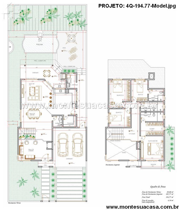 Este projeto de casa sobrado oferece uma combinação perfeita entre sofisticação, funcionalidade e lazer. Com 194,77m² de área construída, ele foi cuidadosamente planejado para atender famílias que valorizam conforto, privacidade e momentos de convivência.