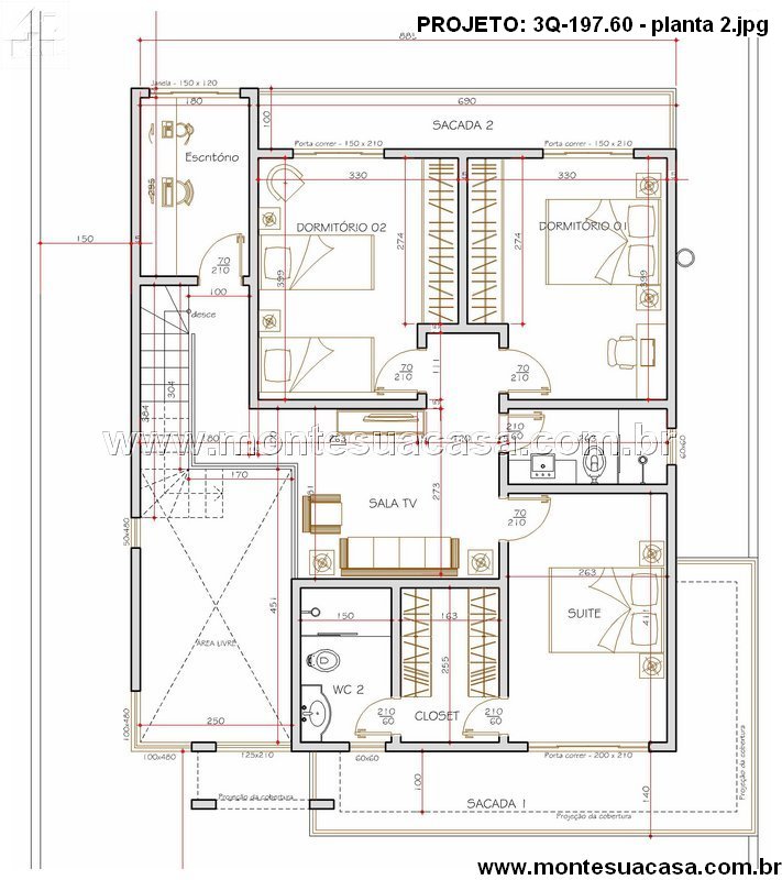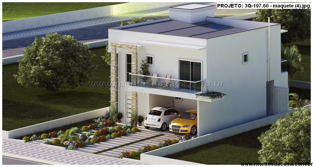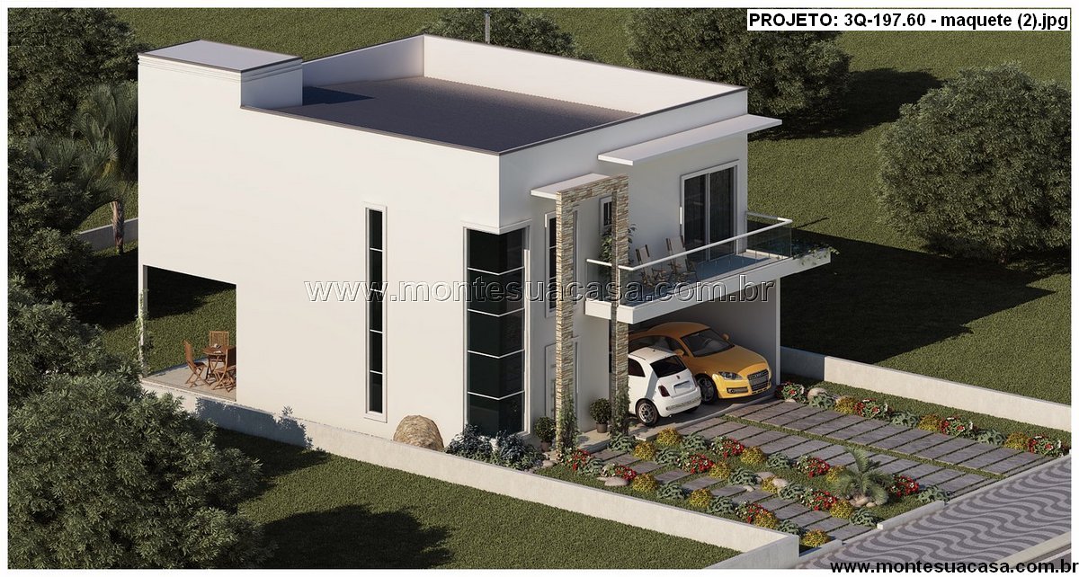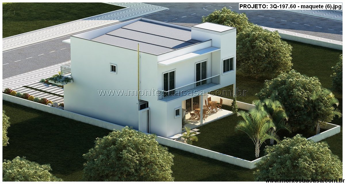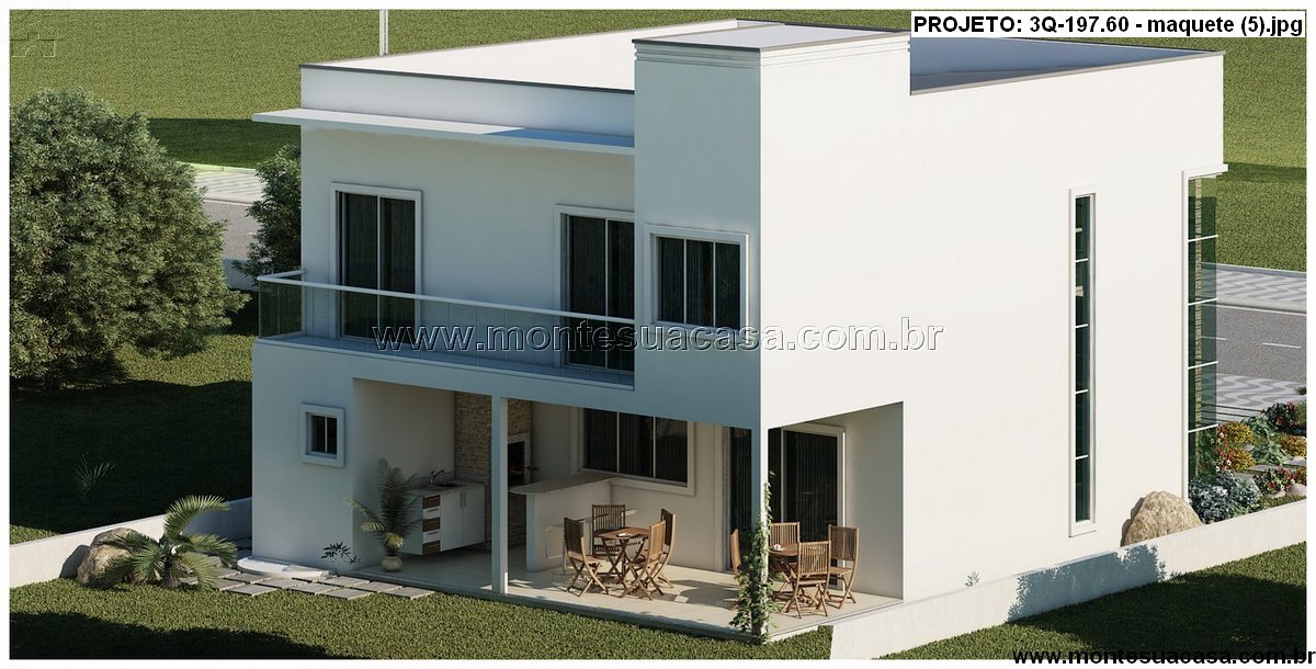 O projeto 3Q-197.60 é uma residência contemporânea de dois pavimentos, pensada para famílias que valorizam conforto, estética e funcionalidade. Com 197,60m² de área construída, esta casa oferece uma planta inteligente e bem distribuída, que privilegia a integração dos ambientes sociais e a privacidade dos espaços íntimos.