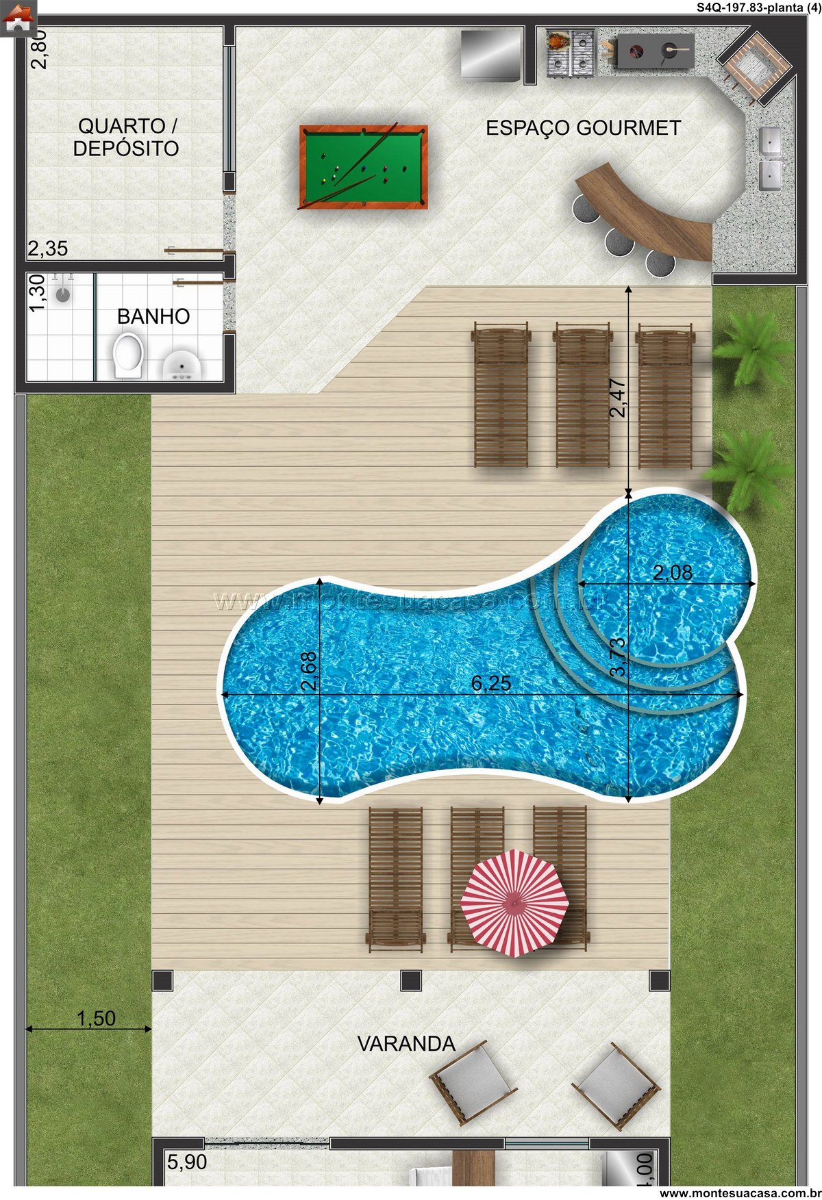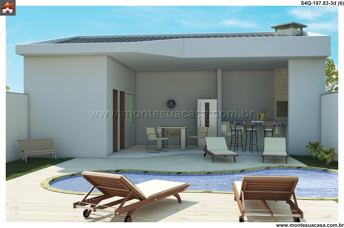 O projeto inclui um versátil espaço gourmet, ideal para refeições descontraídas e momentos de descontração com amigos e família. Este ambiente se integra às áreas externas, ampliando as possibilidades de lazer. A varanda lateral complementa o projeto, oferecendo um local agradável para aproveitar o ar livre.