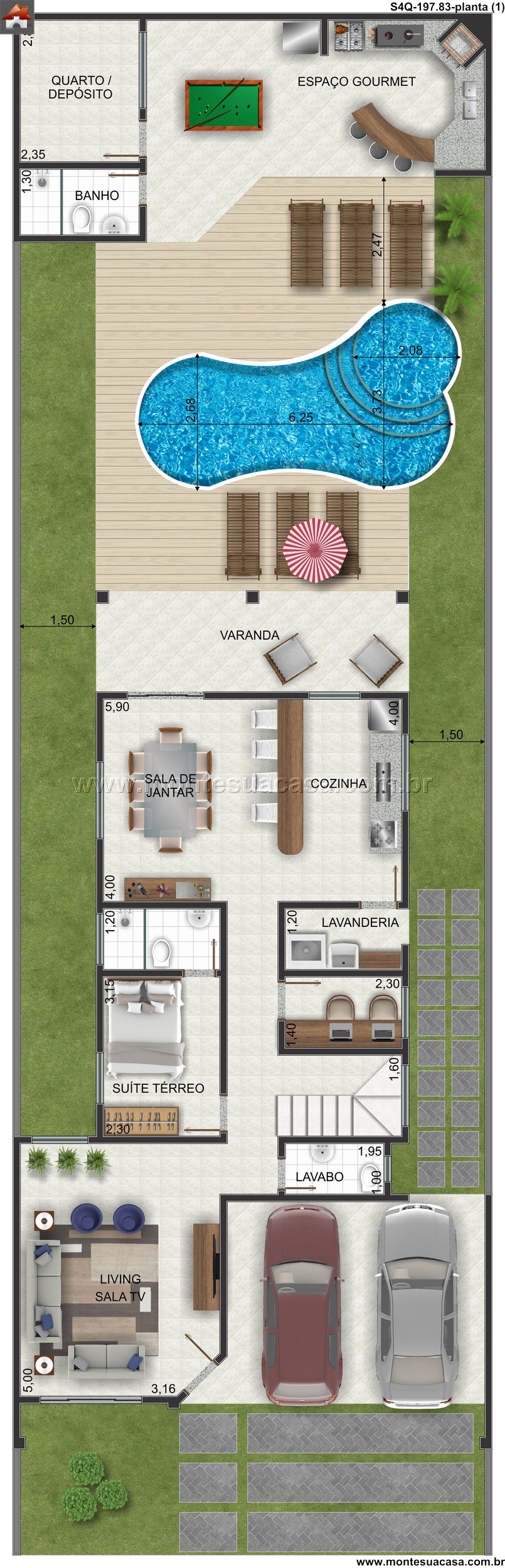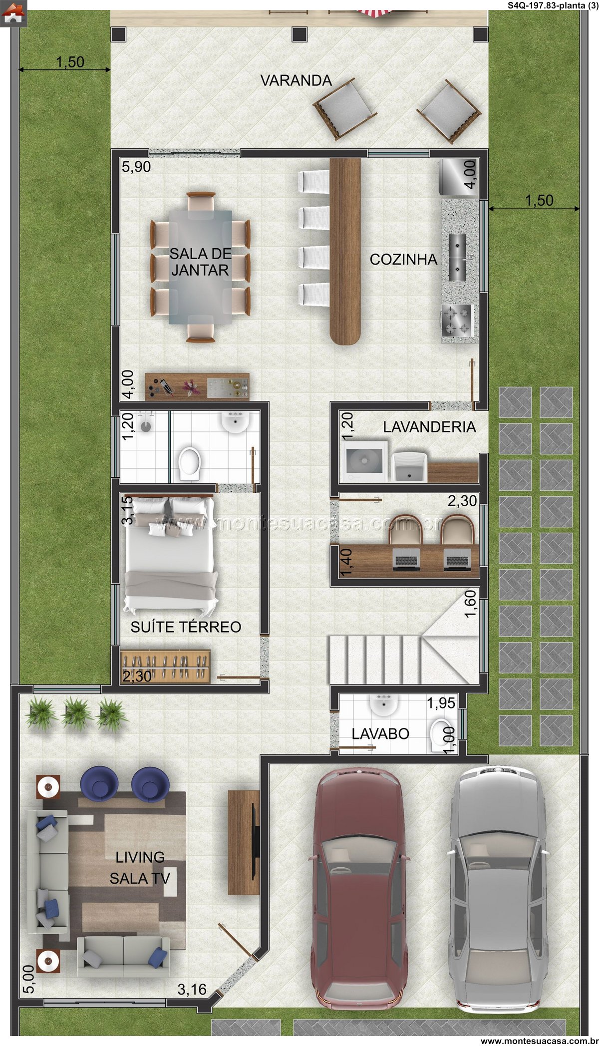 Este sobrado moderno de 197.83m² apresenta uma distribuição inteligente em dois pavimentos, criando espaços funcionais e aconchegantes para a família. A arquitetura valoriza a integração entre os ambientes, garantindo praticidade e sofisticação em cada detalhe.