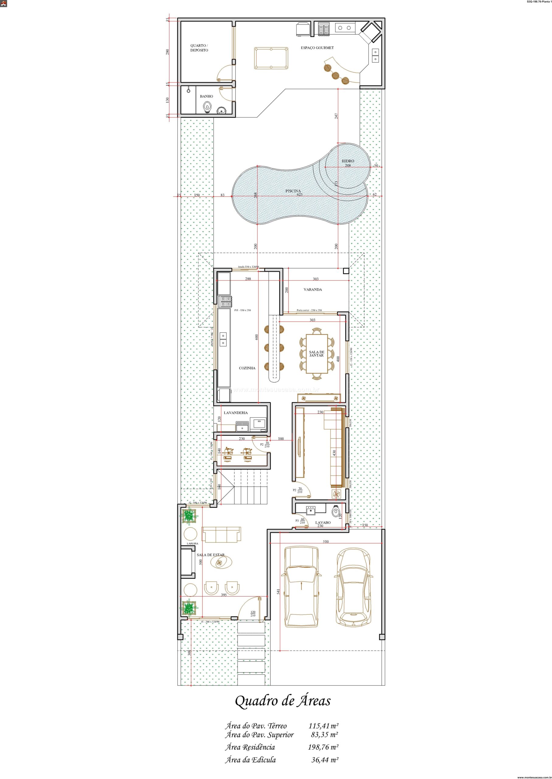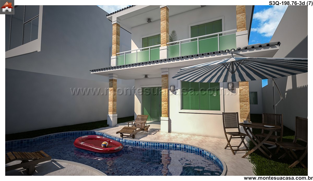 Este sobrado contemporâneo de 198.76 metros quadrados foi meticulosamente planejado para oferecer conforto e funcionalidade em dois pavimentos. A planta inteligente distribui os ambientes de forma a valorizar a privacidade da área íntima sem descuidar da integração dos espaços sociais. No pavimento térreo, a sala de estar se conecta perfeitamente com a área gourmet e a varanda, criando um amplo ambiente de convivência ideal para receber amigos e familiares. A circulação fluida entre os cômodos garante praticidade no dia a dia e um senso de amplitude. Os materiais e acabamentos propostos seguem uma linguagem moderna, com linhas retas e neutras que compõem uma atmosfera ao mesmo tempo aconchegante e sofisticada.